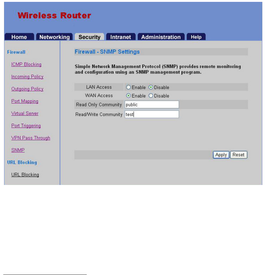 IEEE 802.11g WLAN Router supports the Simple Network Management Protocol