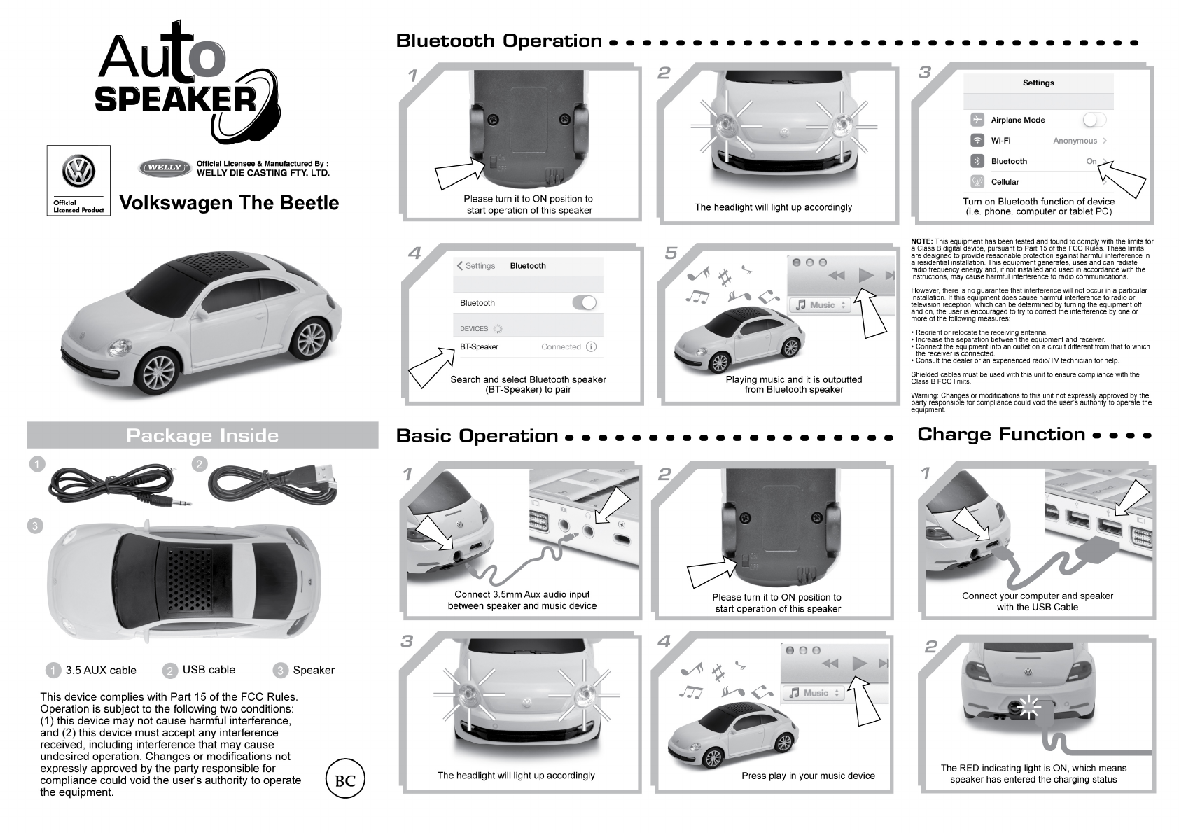 Wellitec Development 94001BT VW Beetle Bluetooth Speaker User Manual