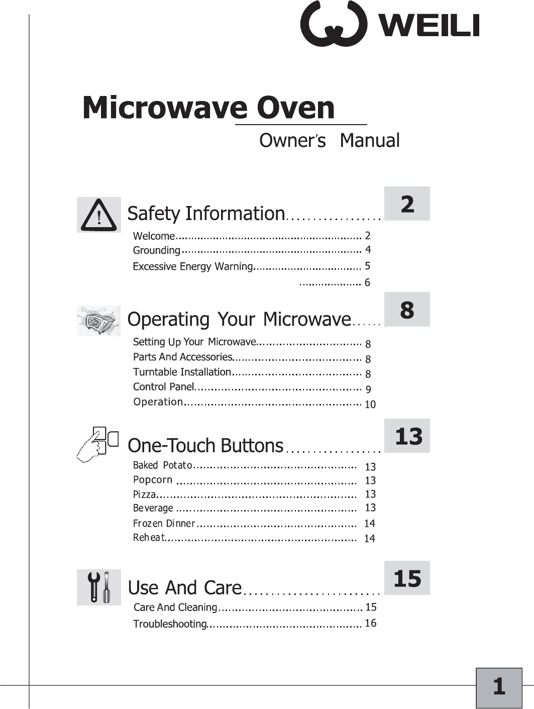 Welly Electrical Appliances DW20PXL Microwave Oven User Manual HB P100N30AL S3 or P100N30ALS3B 20111103