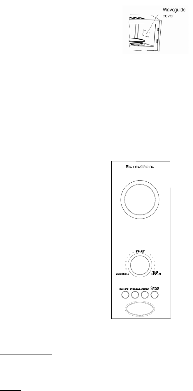 waveguide cover in the oven with a soft damp cloth to remove any food splashed. Buildup splashes may