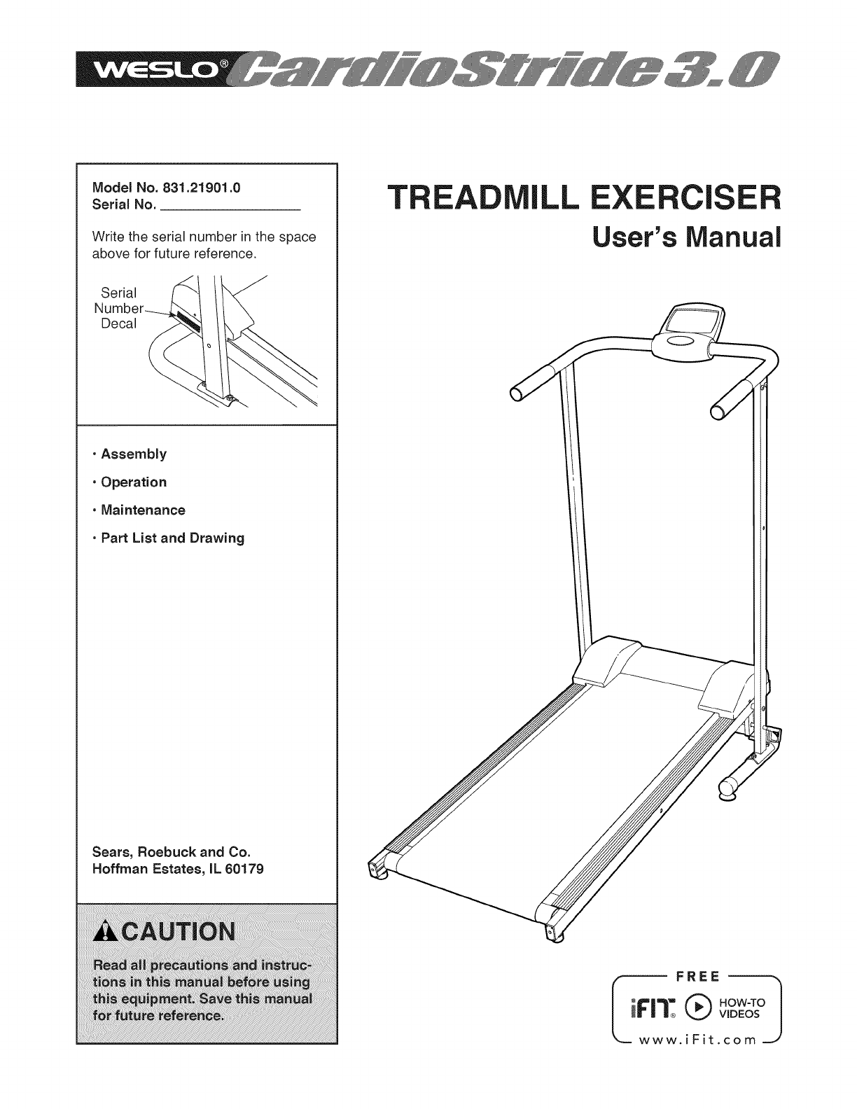 User Manual: Weslo 831219010 831219010 WESLO WESLO CARDIOSTRIDE 3.0 - Manuals and Guides View the owners manual for your WESLO WESLO CARDIOSTRIDE 3.0 #831219010. Home:Fitness Equipment Parts:Weslo Parts:Weslo WESLO CARDIOSTRIDE 3.0 Manual