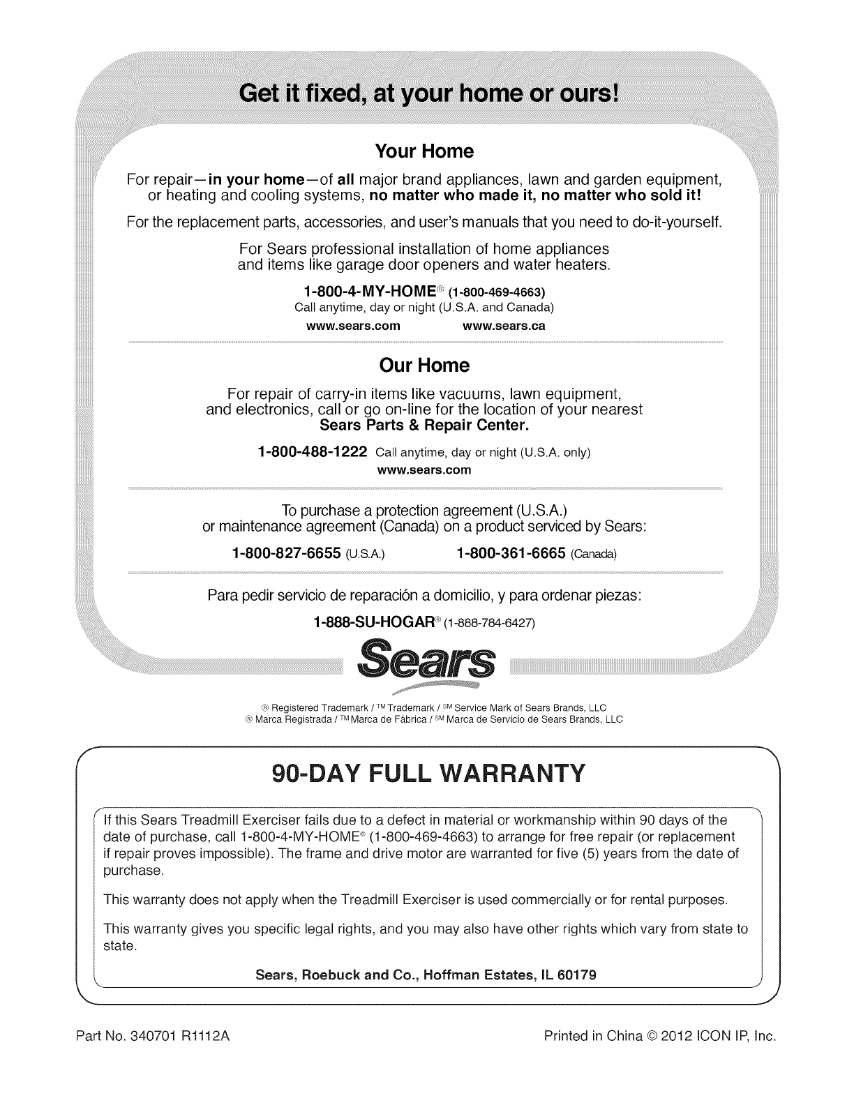 Part No. 340701 R1112A Printed in China © 2012 ICON IP, Inc.