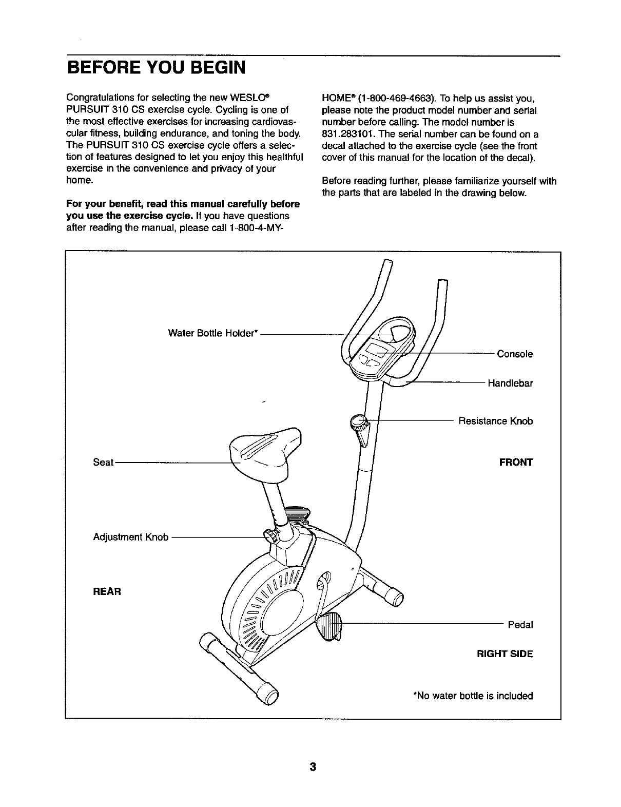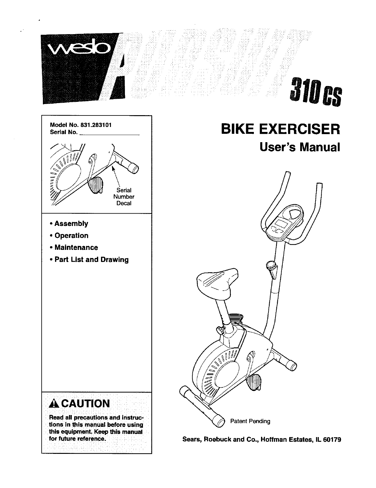 Weslo 831283101 User Manual PURSUIT 310CS Manuals And Guides L0410177