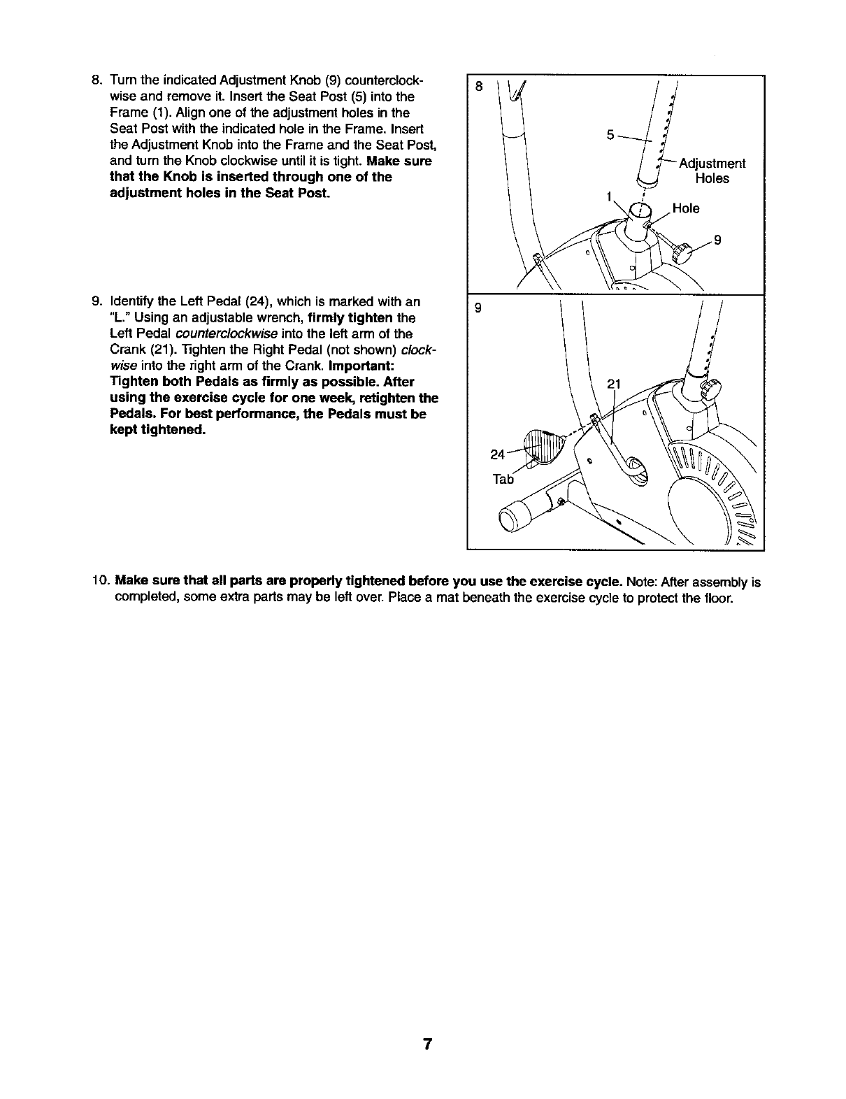 tions before using the exercise cycle.