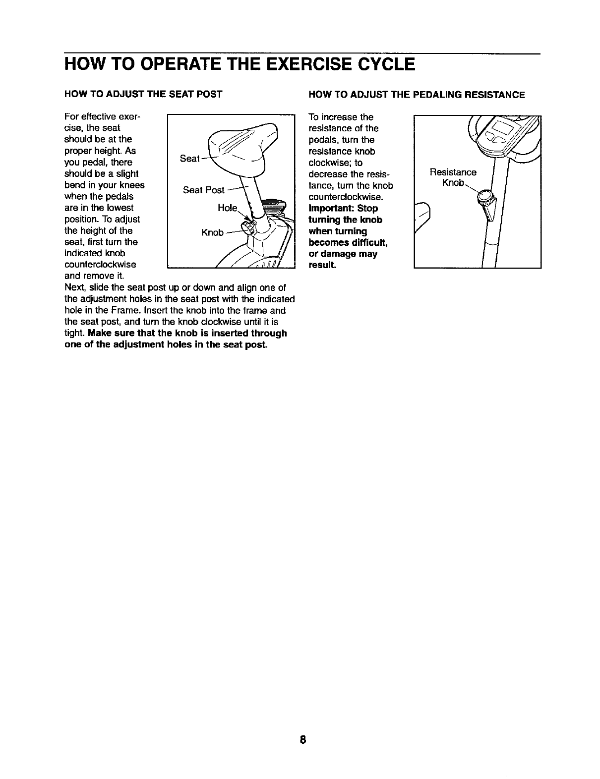 8. The exercise cycle should not be used by