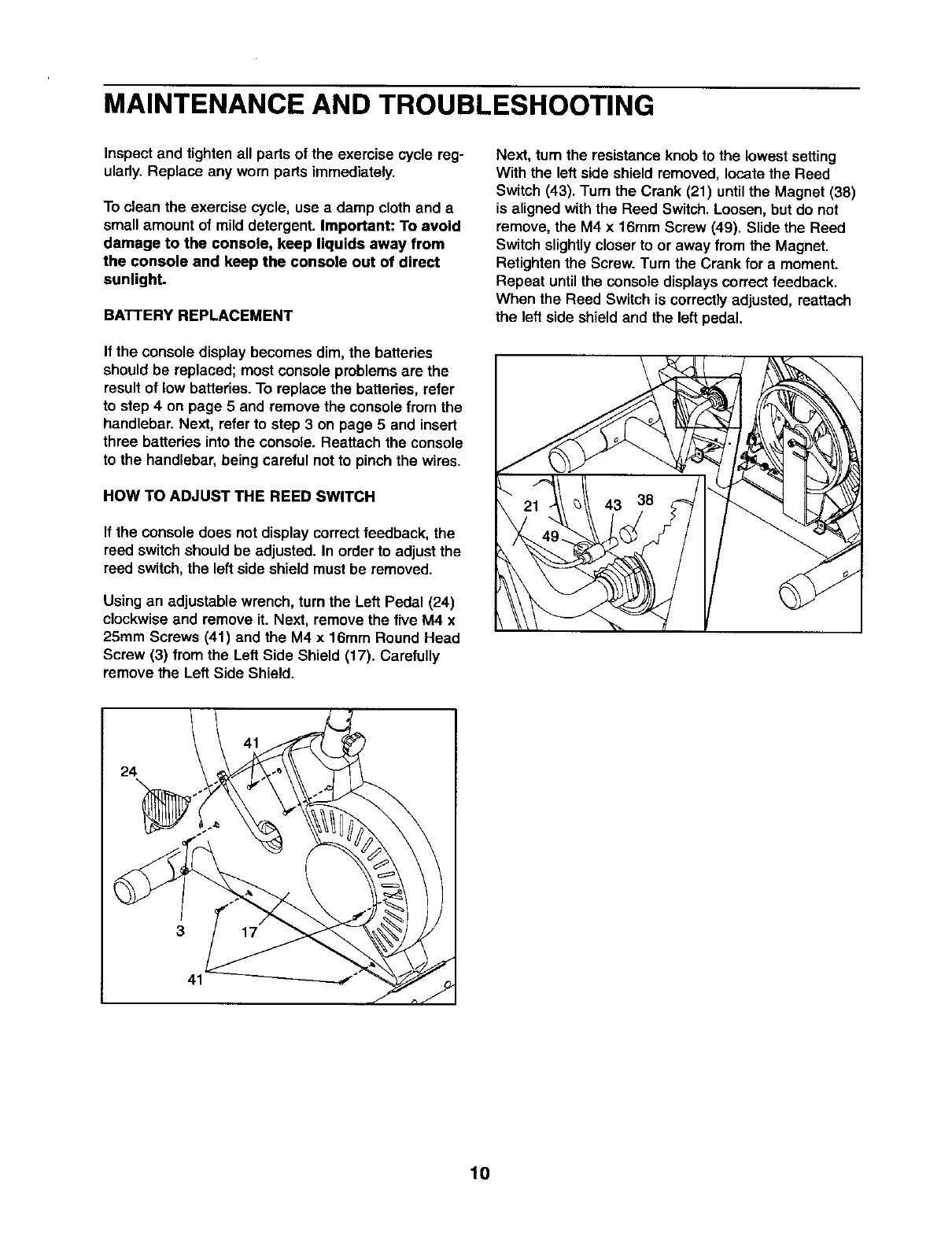 you use the exercise cycle. If you have questions