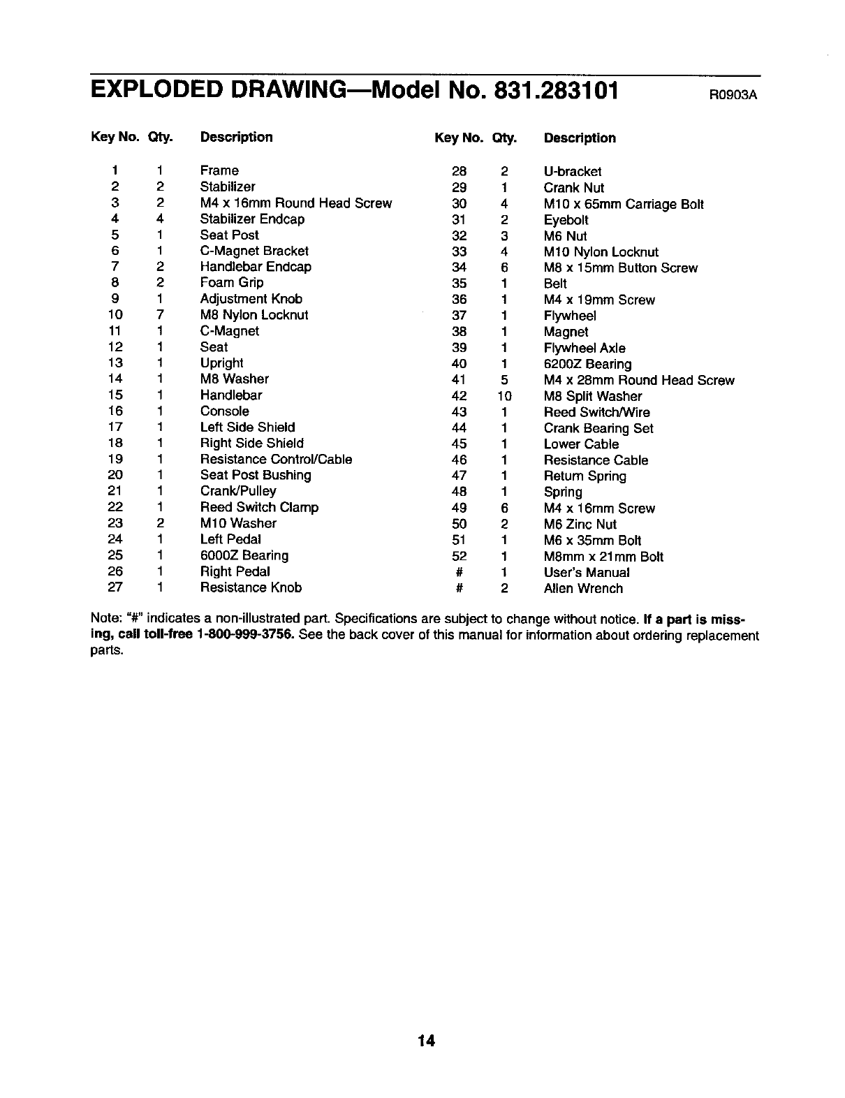 EXPLODED DRAWINGmModel No. 831.283101 R0903A