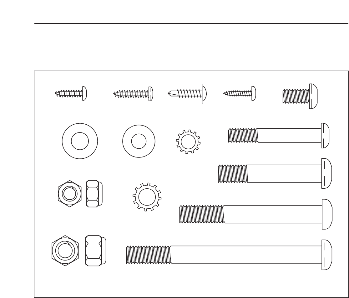 Remove this chart and use it to identify small parts during assembly. Save this chart and the EXPLODED