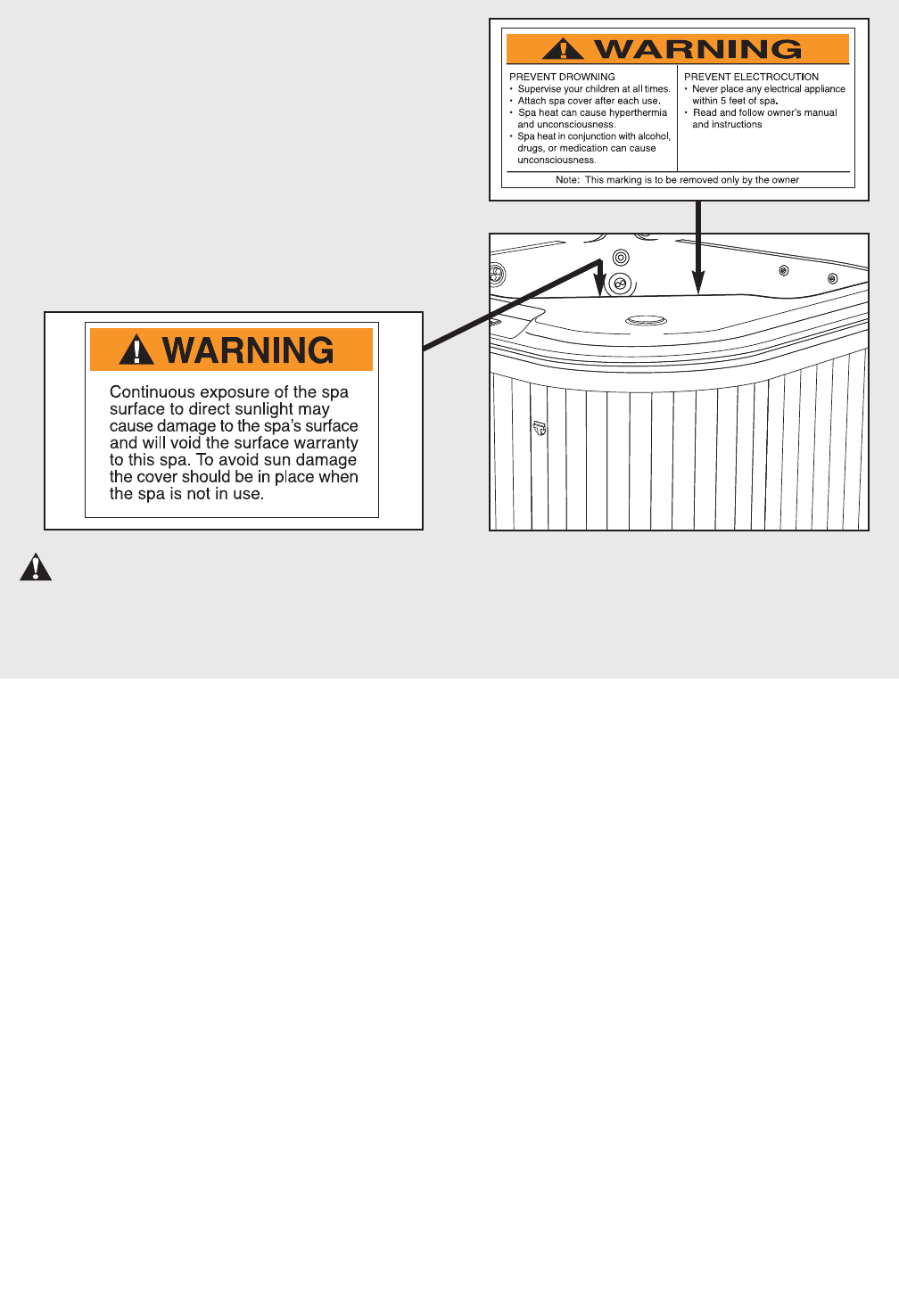 sure to direct sunlight and ultraviolet rays while the spa is empty; damage to the pump, motor, plumbing, and