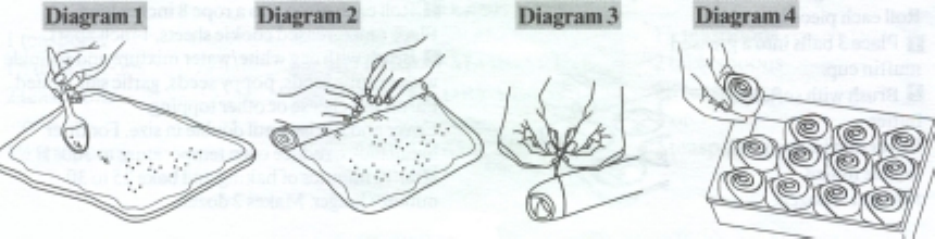 tightly on long side. Press edges to seal and form into a 12-inch long, evenly shaped roll. See Diagram 2. With a knife or