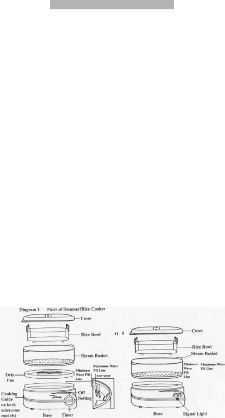 SPECIAL NOTE: this booklet contains instructions for use of two different Steamer/Rice Cookers. One model features a timer and