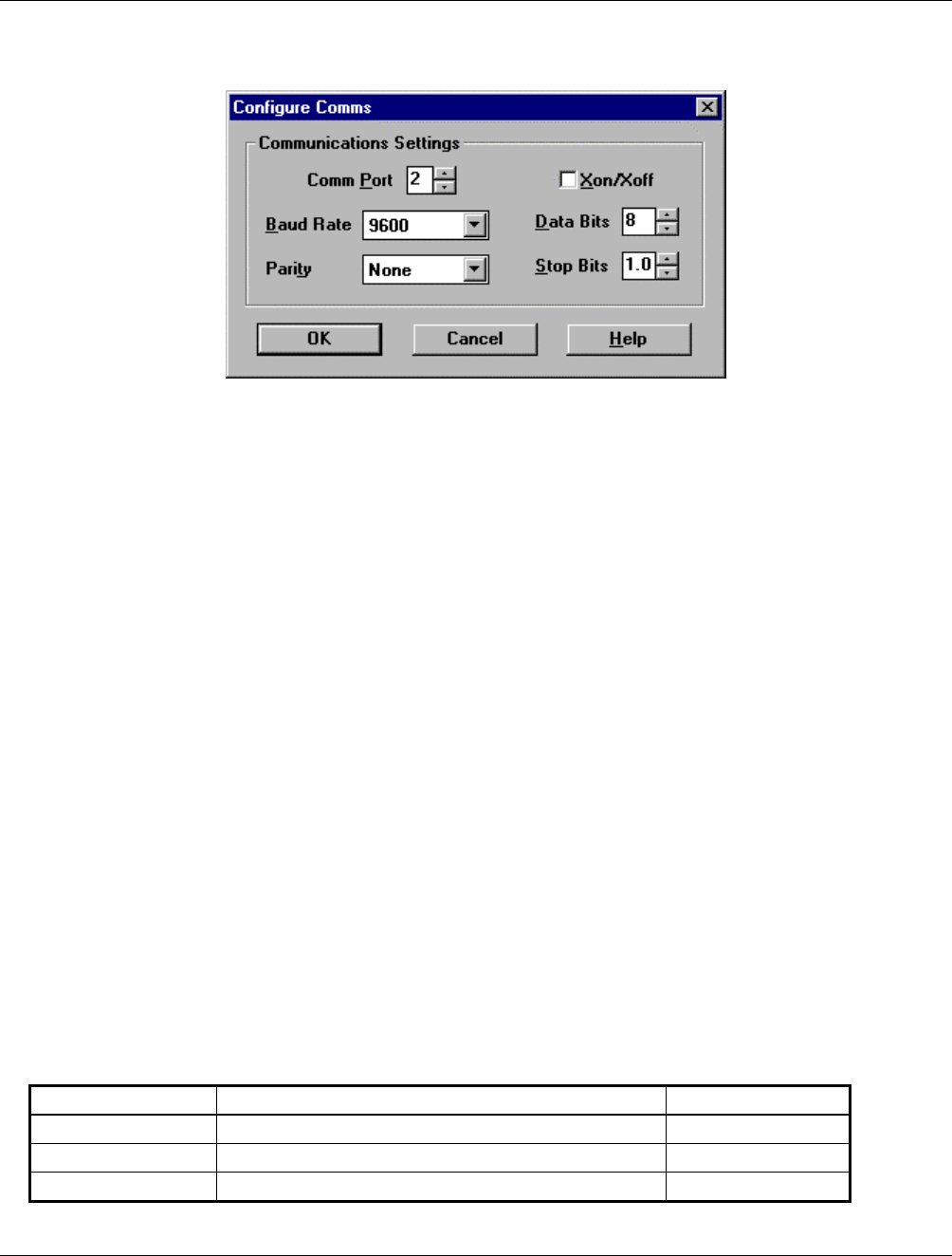 The Controller Module default communications settings are 9600 baud, 8 data bits, 1 stop bit and no parity