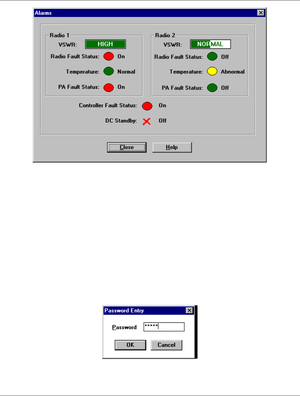 Figure 6-4 Radio 1 and Radio 2 Status Dialog Box