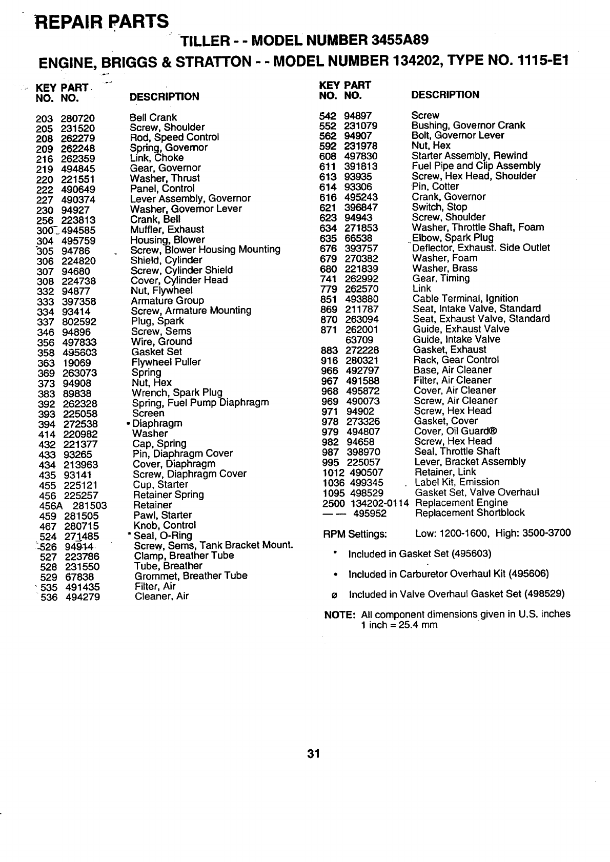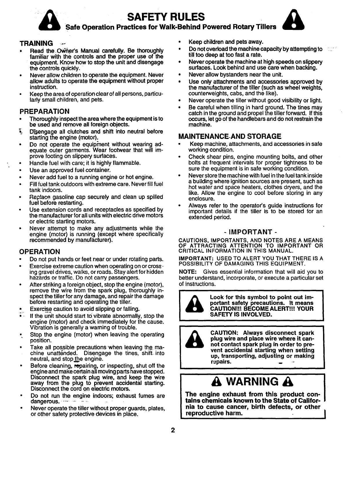 Western Auto 3455A89 User Manual REAR TINE TILLER Manuals And Guides 98080198