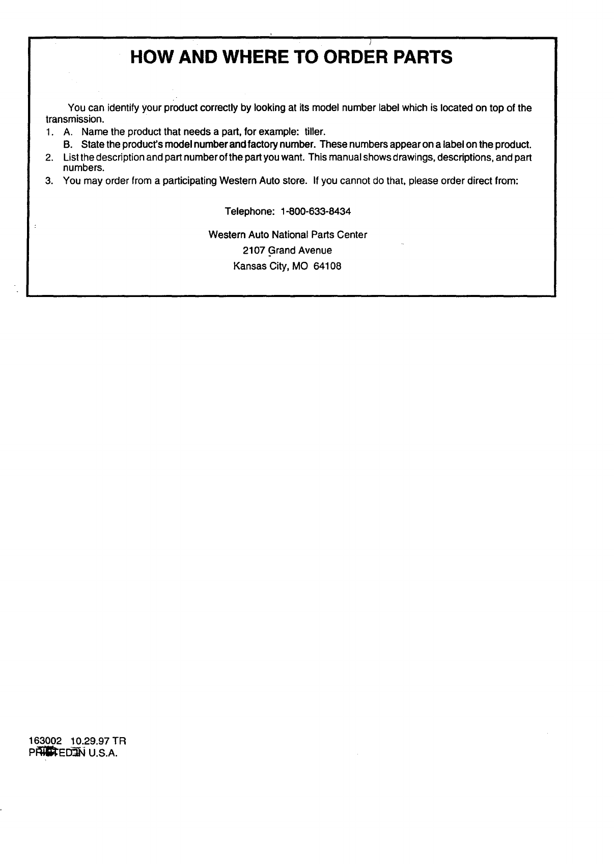 3. You may order from a participatingWestern Auto store. If you cannot do thaL please order direct from:
