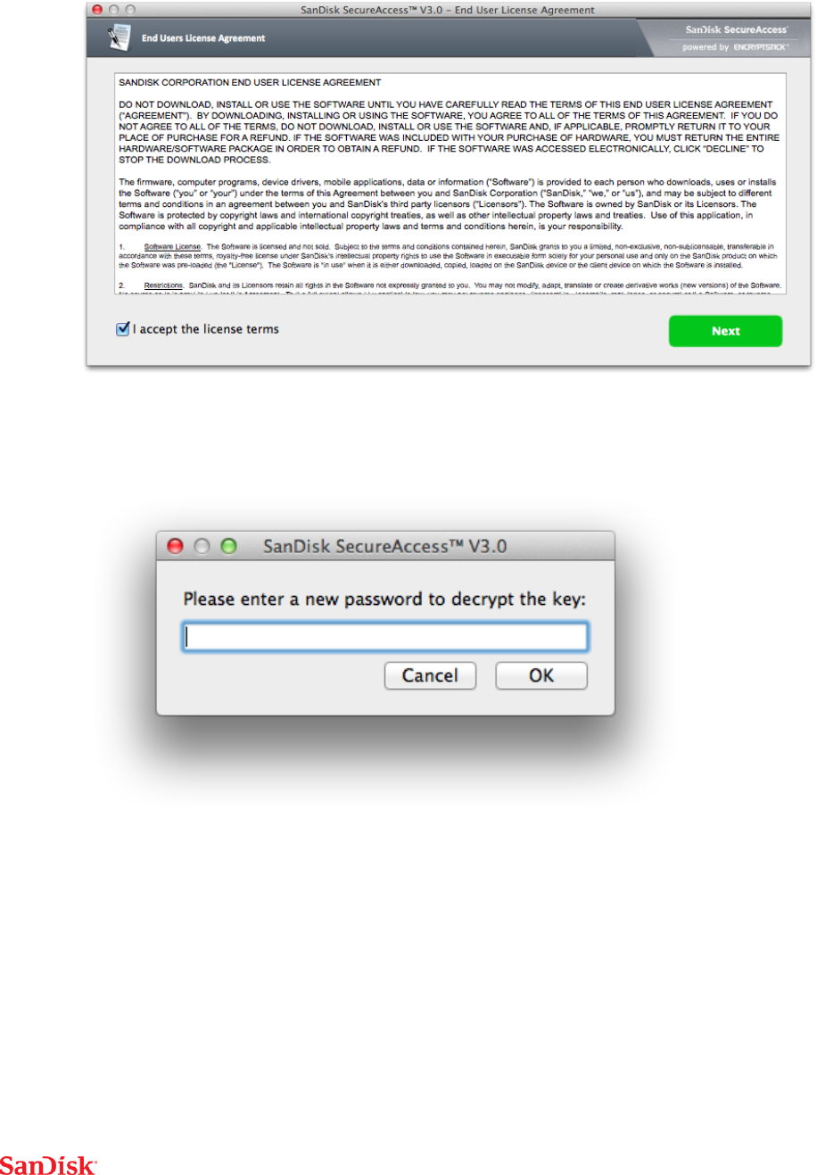 3 Launch the app SanDiskSecureAccessV3_mac_6XXX.pkg. Click “Next” in the screen