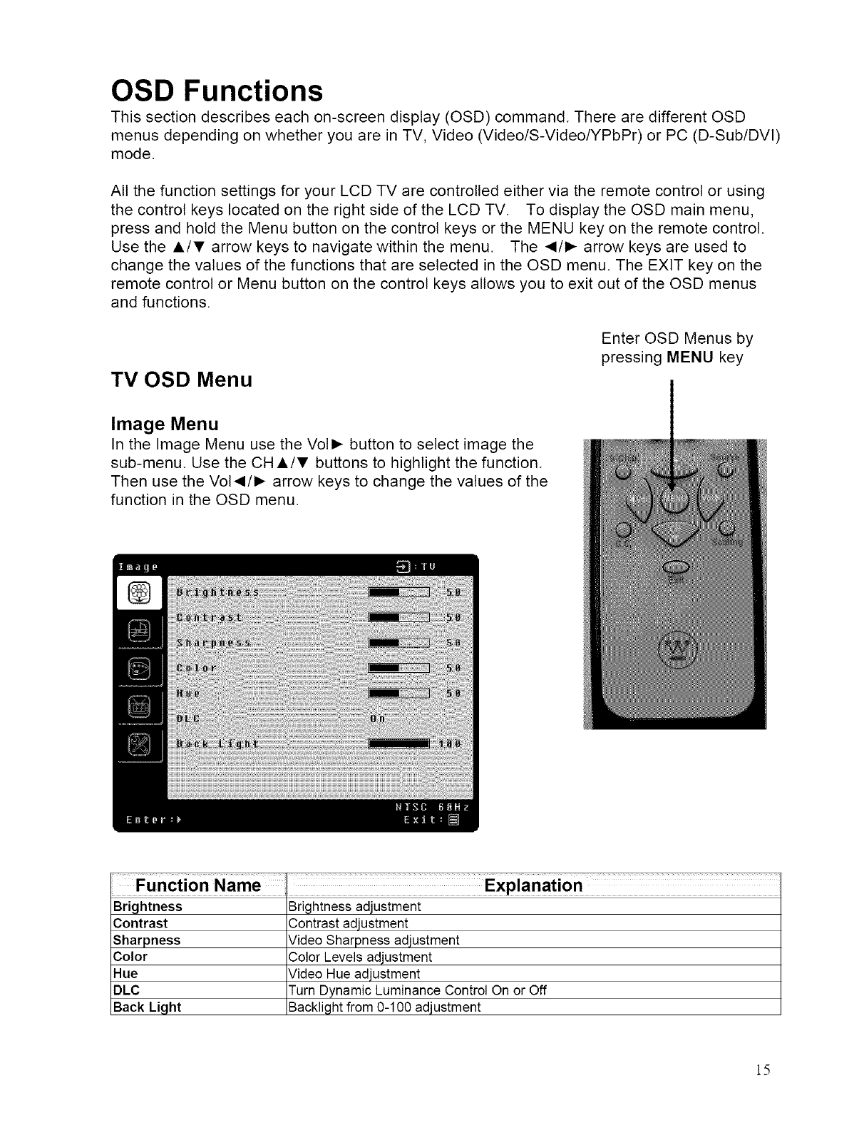 OSD FUNCTIONS ................................................................................................................................................ 15