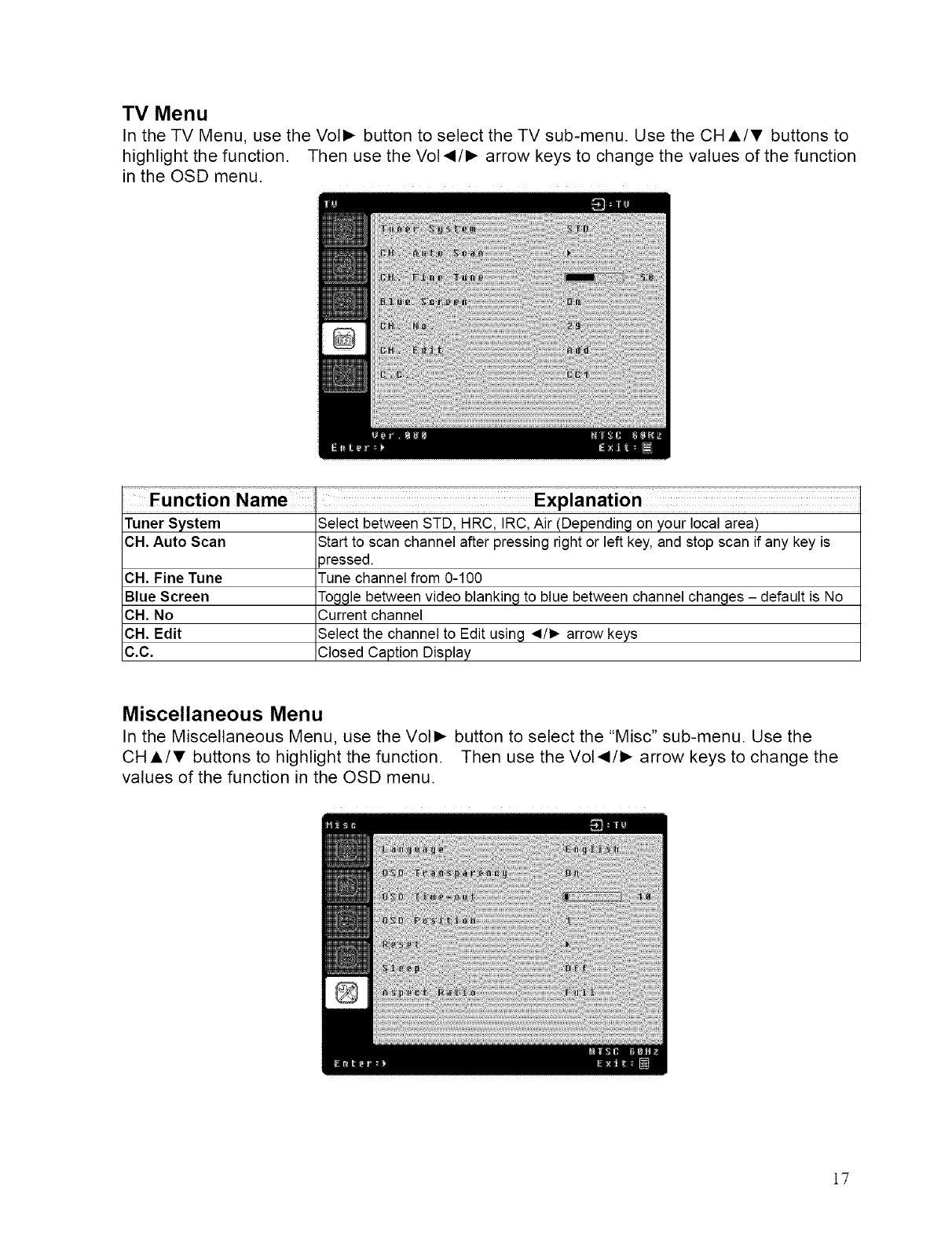 Tuner Compatibility NTSC, Air, CATV (STD/HRC/IRC)