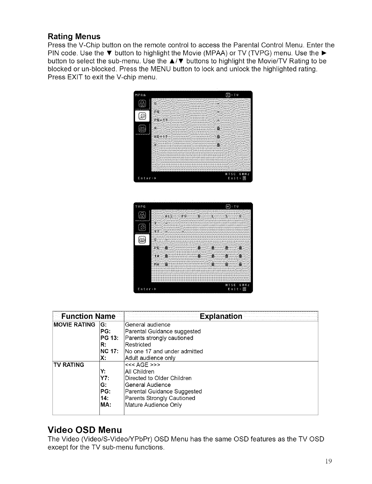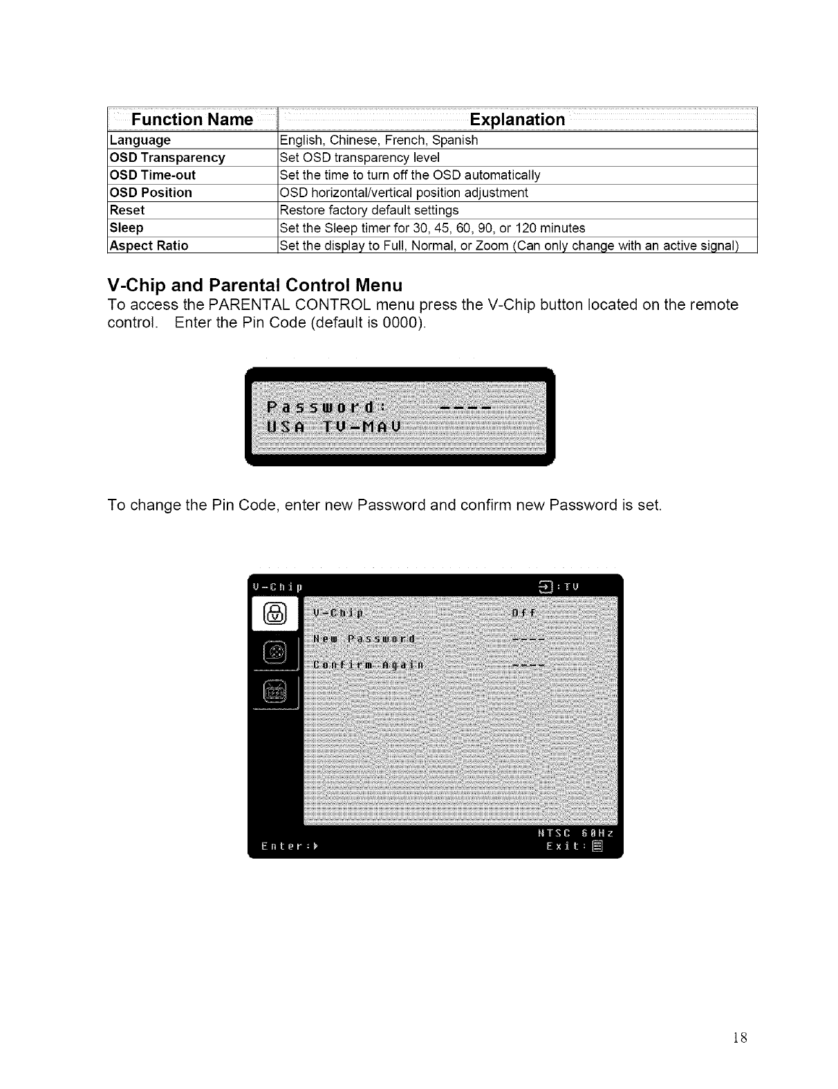 V-Chip and Parental Control Menu ................................................................................................................ 18