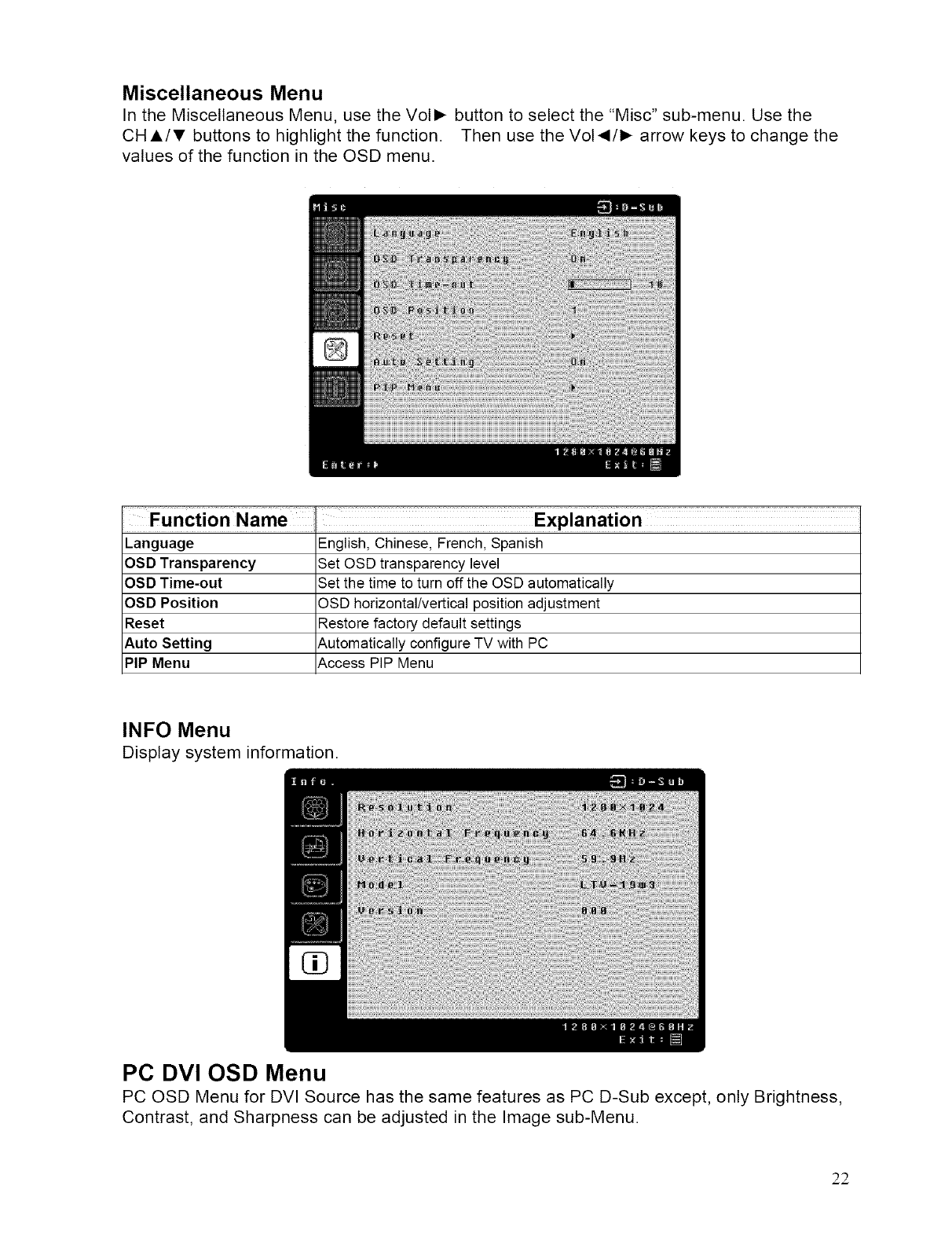 PC DVI OSD Menu ............................................................................................................................................ 22