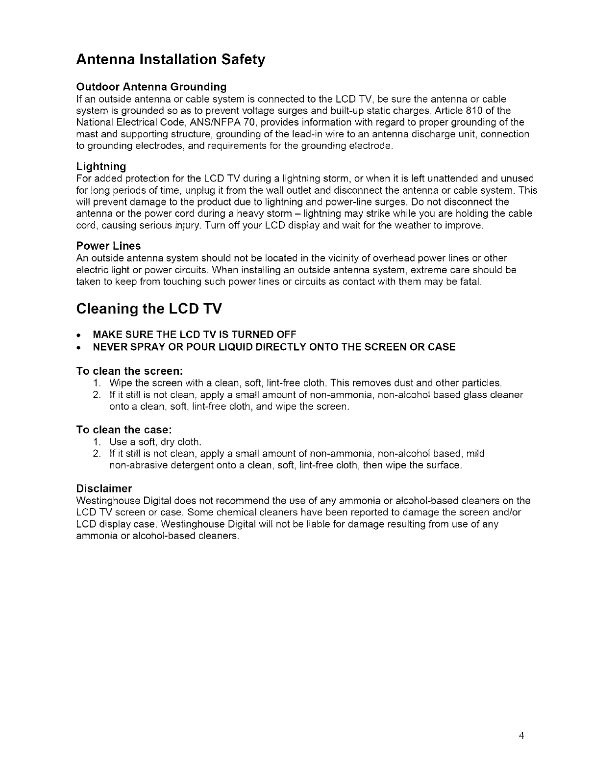 Cleaning the LCD TV ........................................................................................................................................... 4