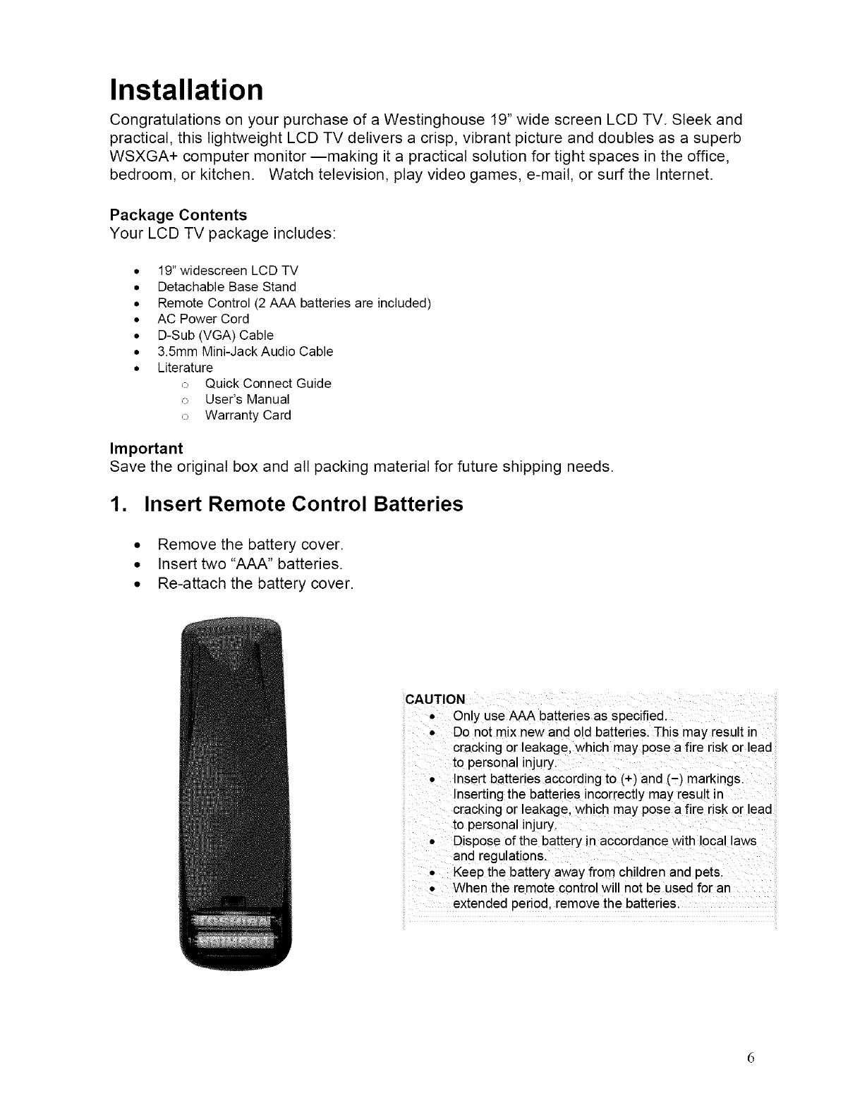 WESTINGHOUSE LCD Television Manual L0608702 WESTINGHOUSE LCD Television Owner's Manual, WESTINGHOUSE LCD Television installation guides