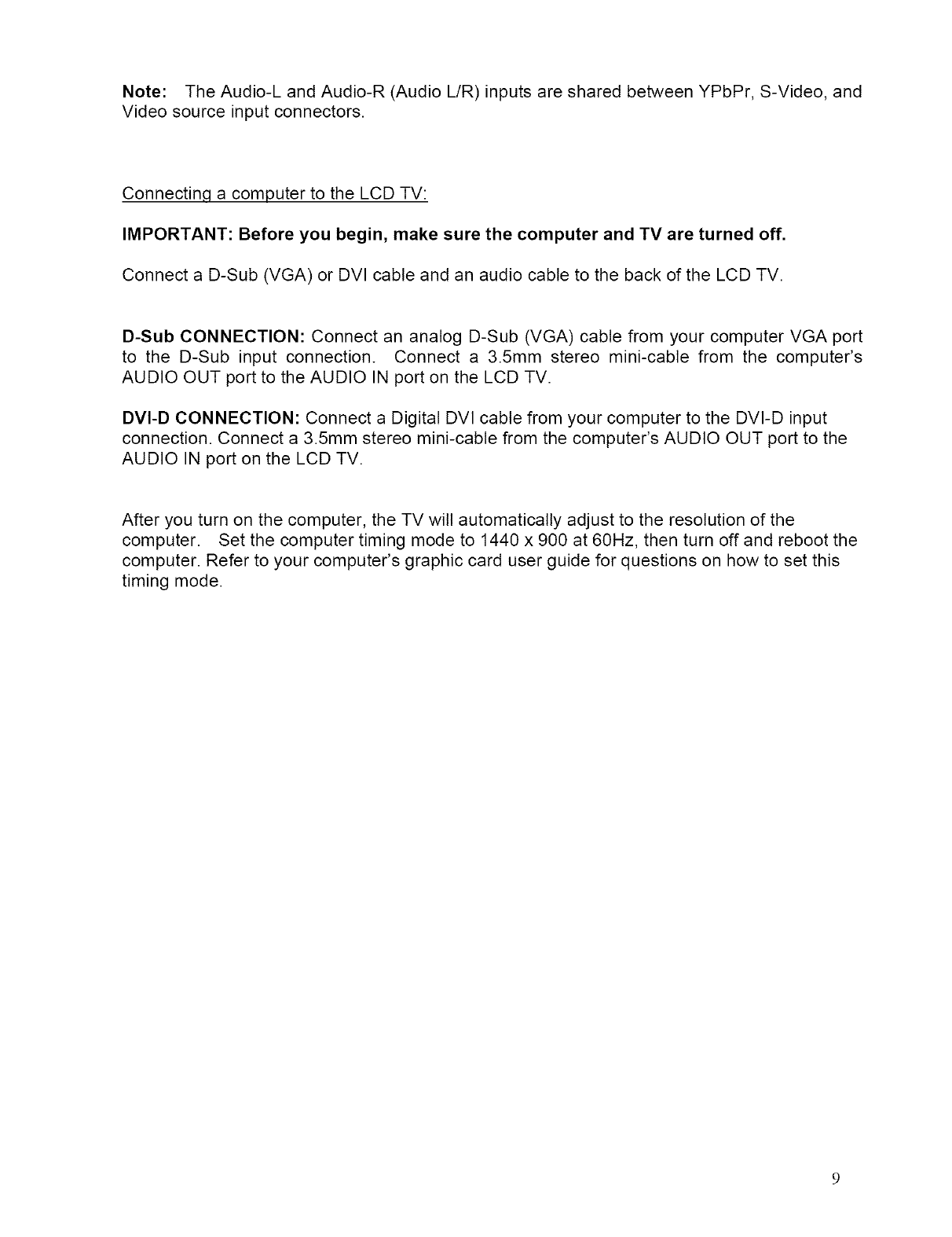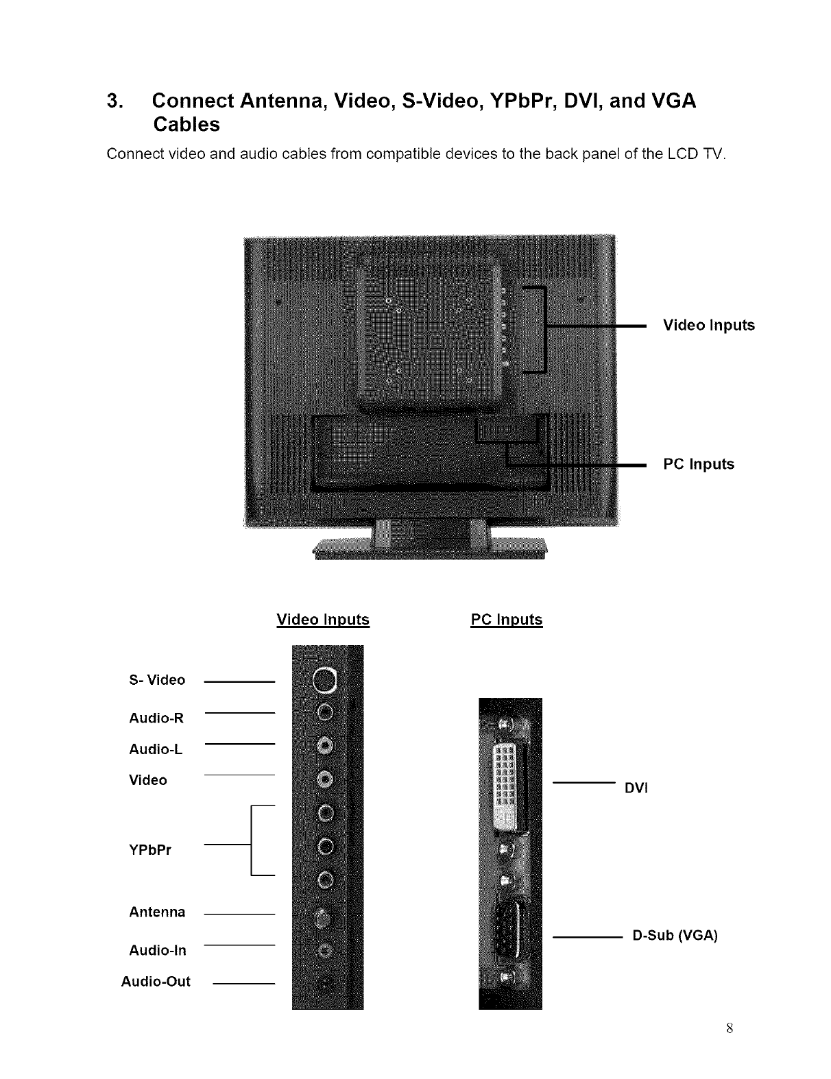 3. Connect Antenna, Cable, Video, S-Video, YPbPr, DVI, and/or VGA Cables ............................................. 8