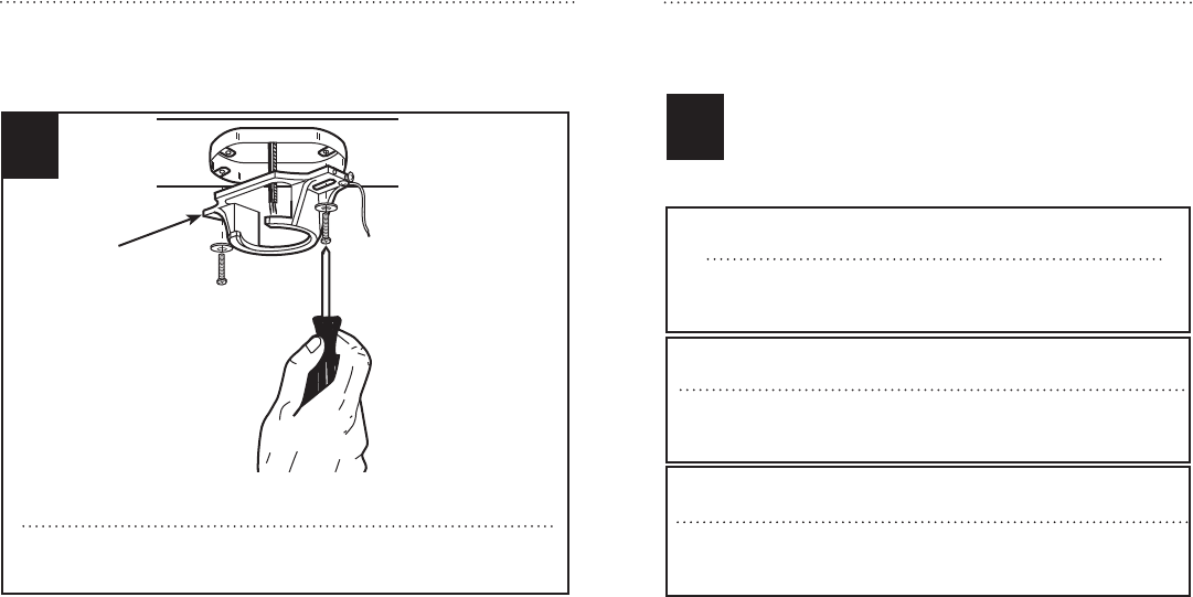 AND USE THE OUTLET SCREWS PROVIDED WITH THE OUTLET BOX. MOST OUTLET BOXES COMMONLY USED FOR THE SUPPORT OF LIGHTING FIXTURES