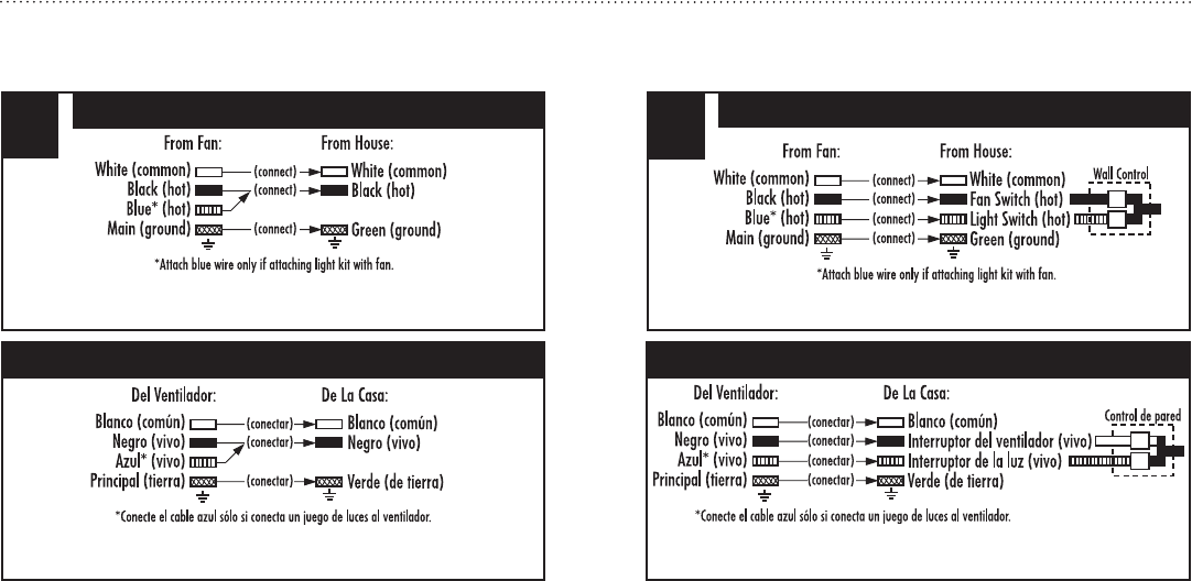 5. ¡Tenga cuidado! Lea todas las instrucciones y la información de seguridad antes de instalar su ventilador nuevo. Revise los diagramas de montaje incluidos.