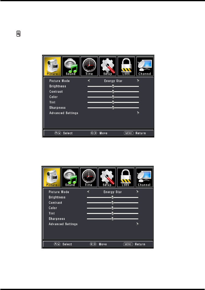 Temperature settings in Picture menu.