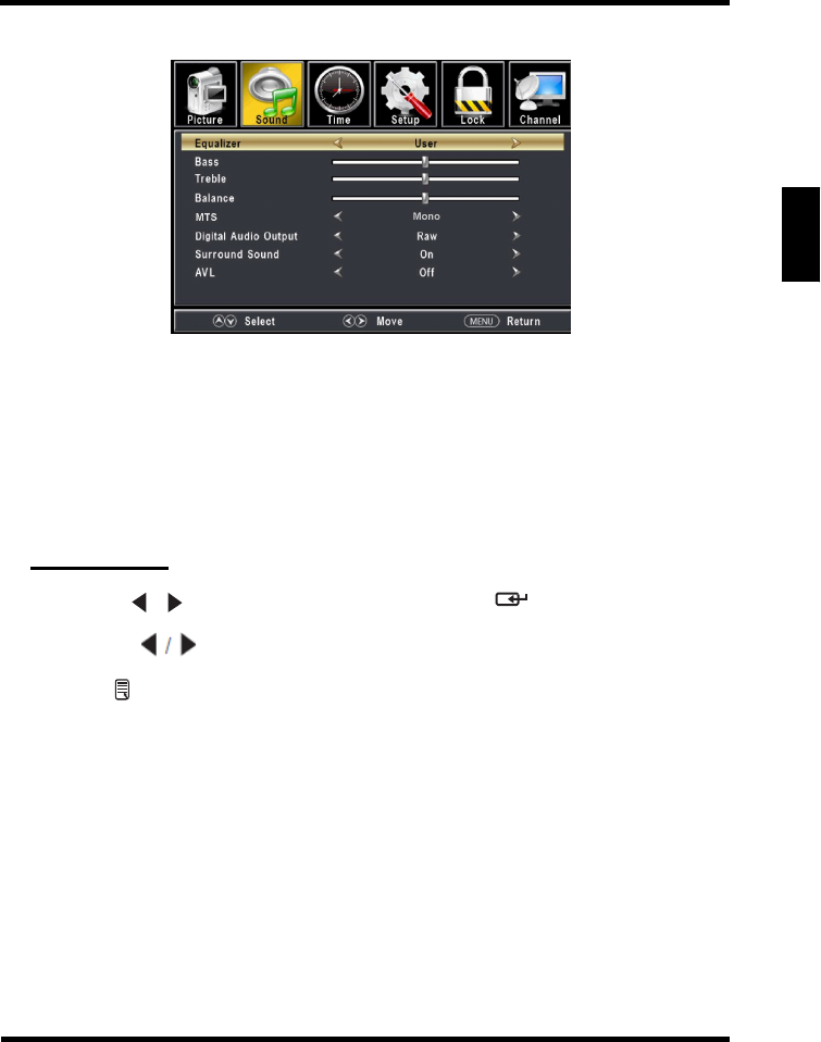 • Adjust the Bass, Treble, and Balance settings in