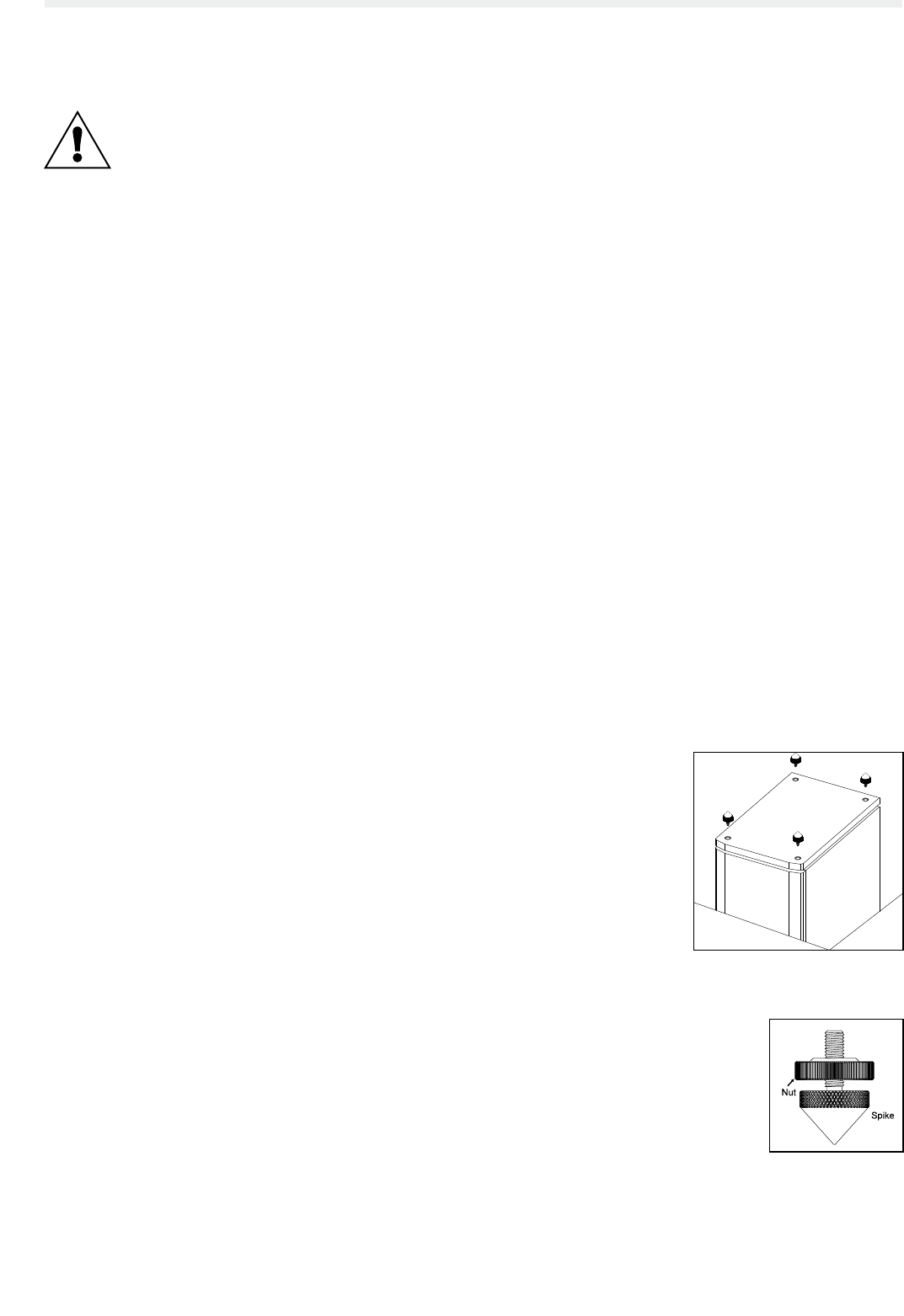When the speaker is upright: You will probably nd that the speaker will wobble with one spike not contacting the oor. Adjust this spike until
