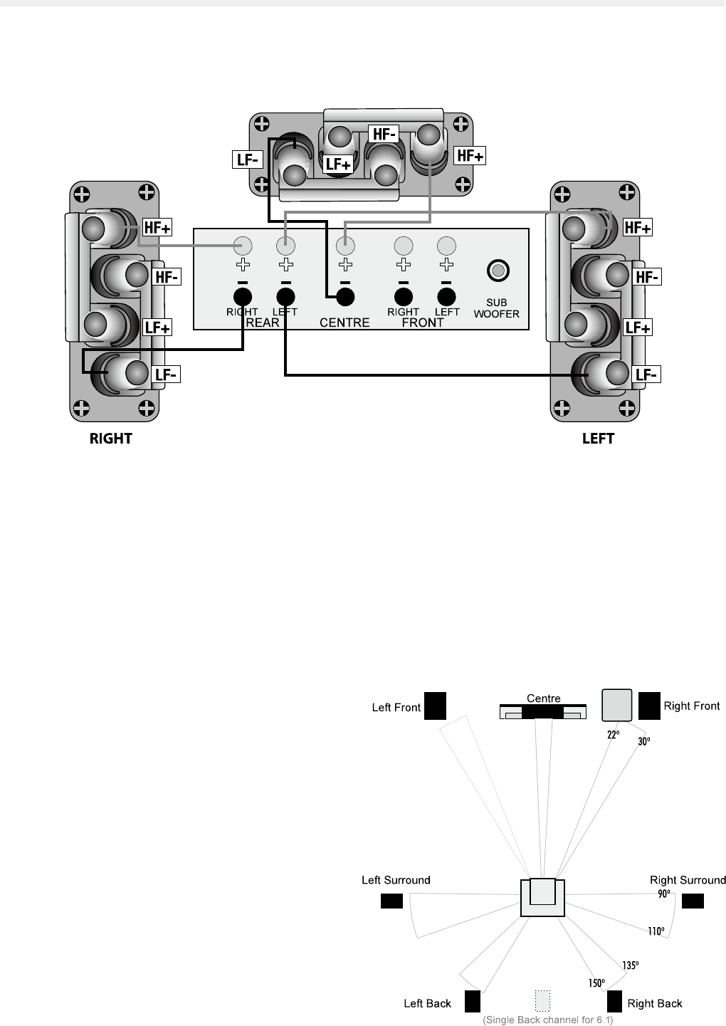 be angled to point directly at the listening position. This will be found useful when the centre speaker is positioned under the TV screen.