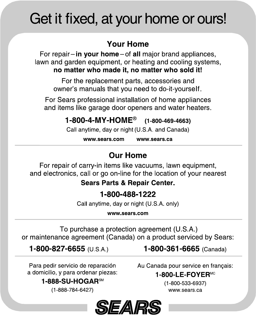 ® Registered Trademark / TMTrademark / SMService Mark of Sears, Roebuck and Co.