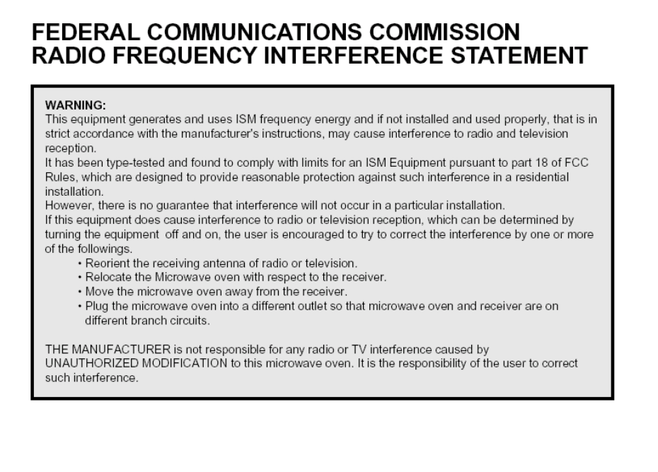 in harmfulexposure to microwave energy. It is important not to defeat or tamper with the
