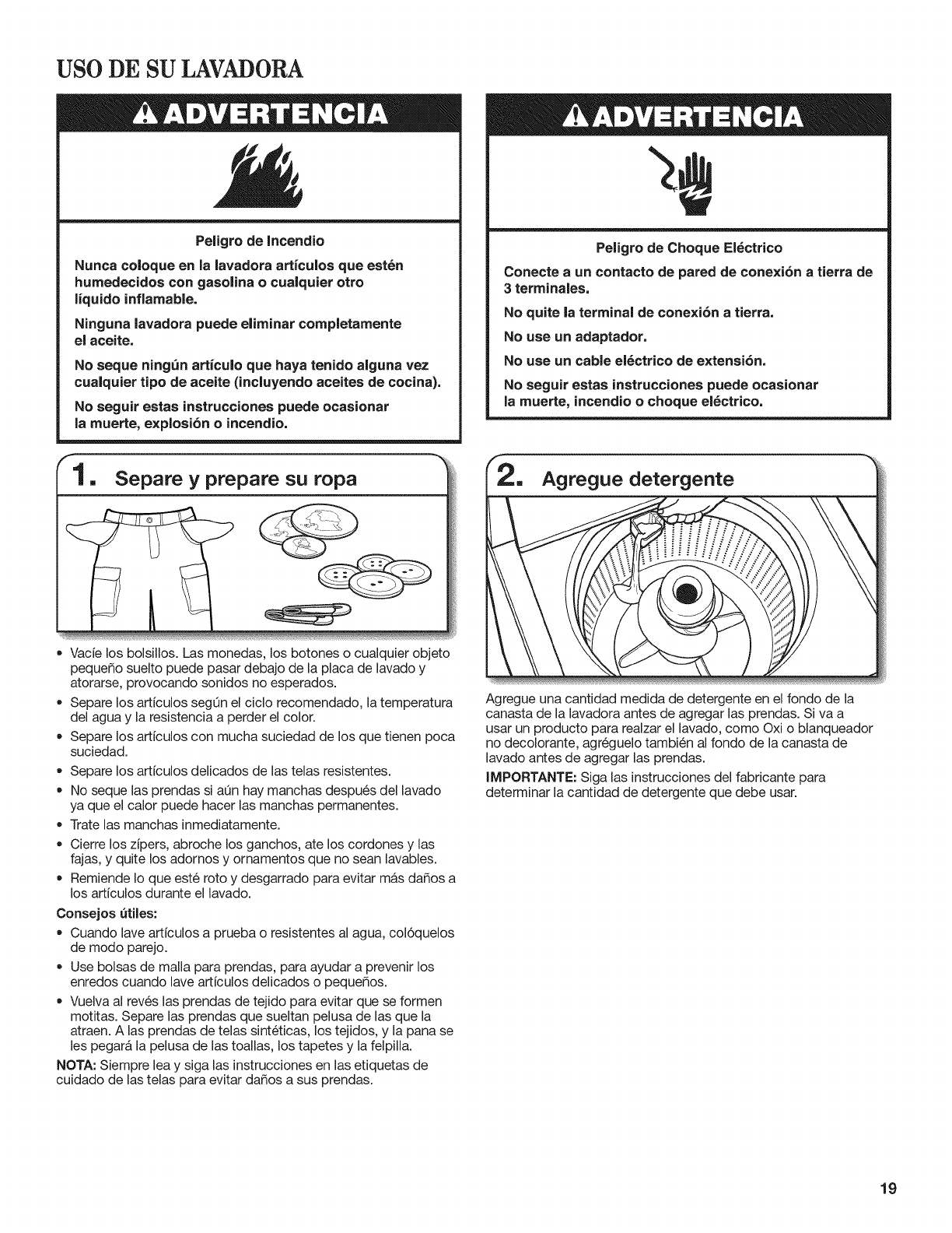 USO DE SU LAVADORA .................................................. 19