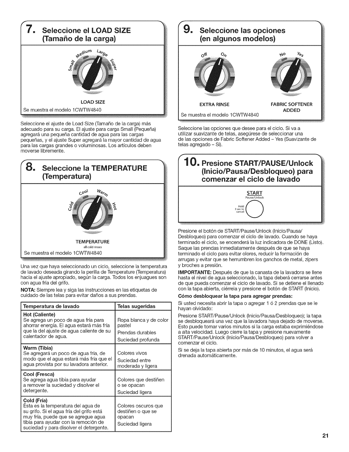Unlock (Inicio/Pausa/Desbloqueo). tomar varies minutes si se estan lavando cargas grandes o telas pesadas.