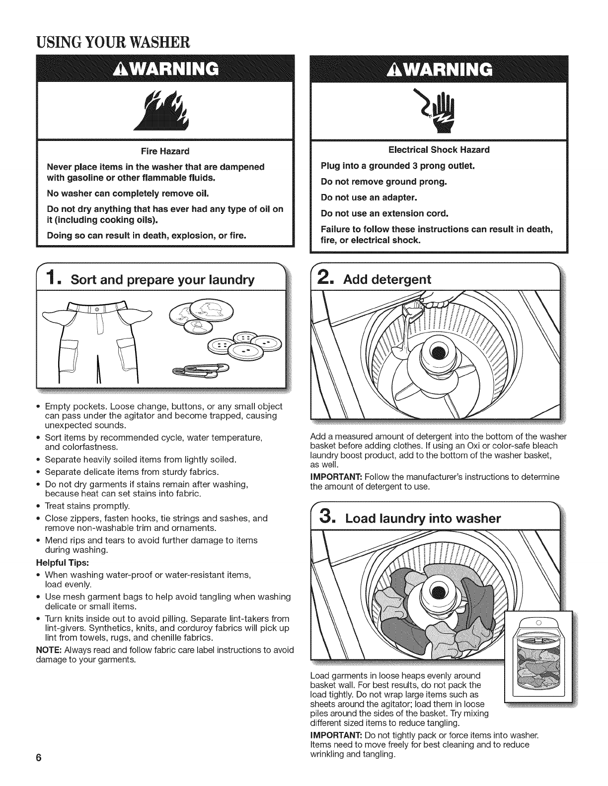 USING YOUR WASHER ..................................................... 6