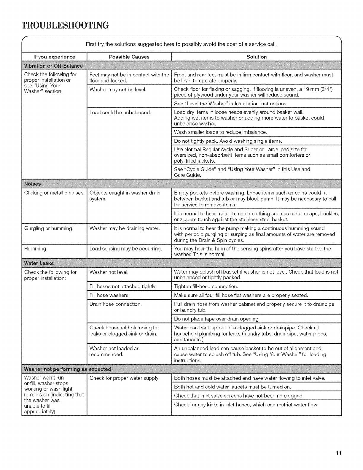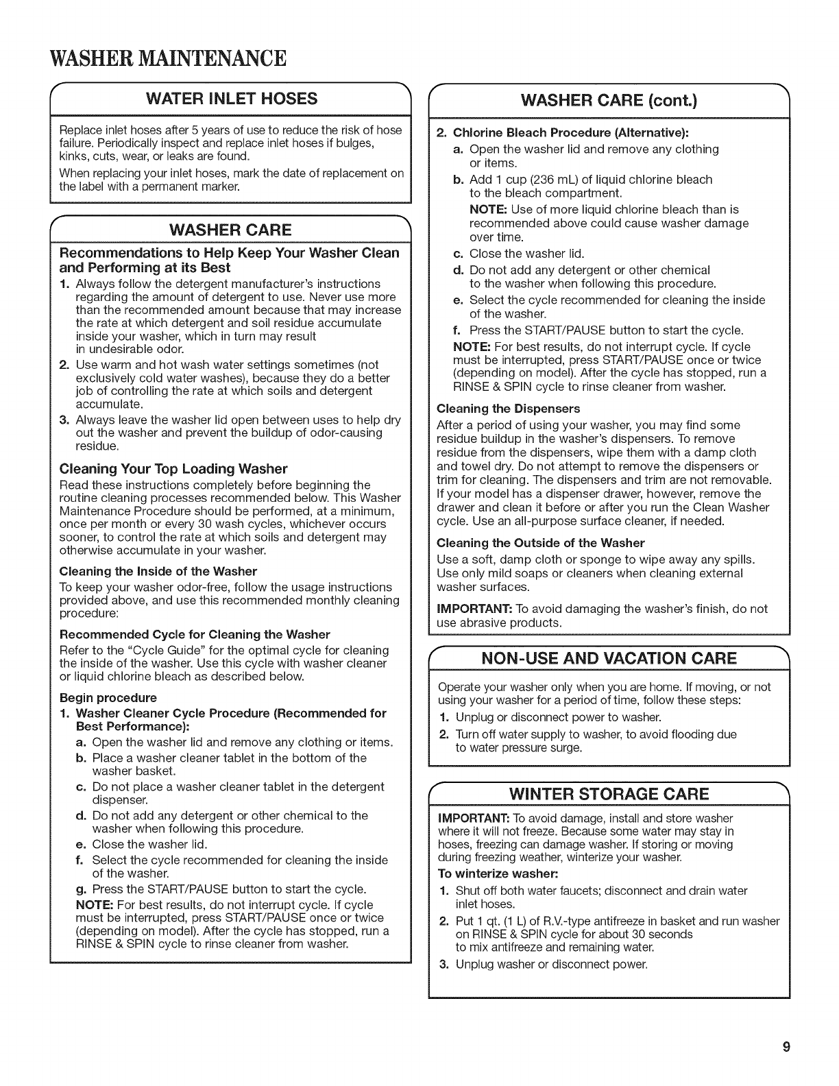 WASHER MAINTENANCE ................................................. 9
