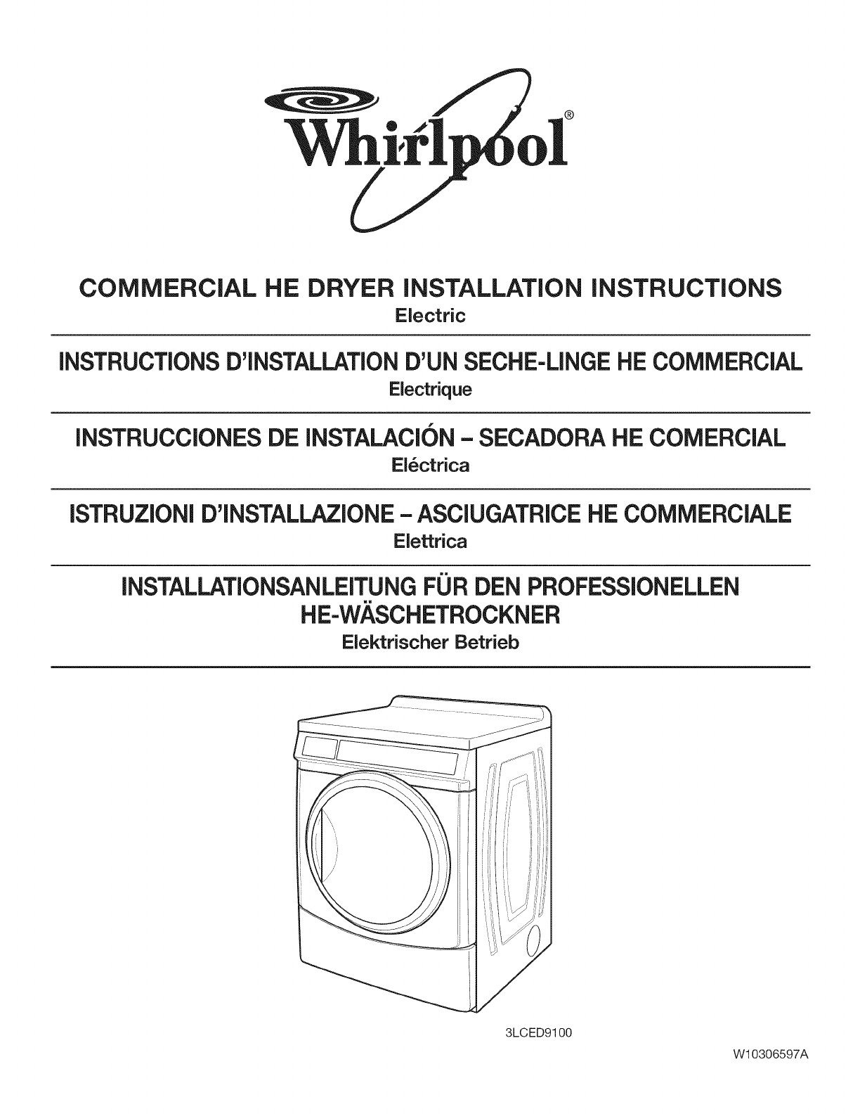 WHIRLPOOL Commercial Dryer Manual L1003359 WHIRLPOOL Commercial Dryer Owner's Manual, WHIRLPOOL Commercial Dryer installation guides