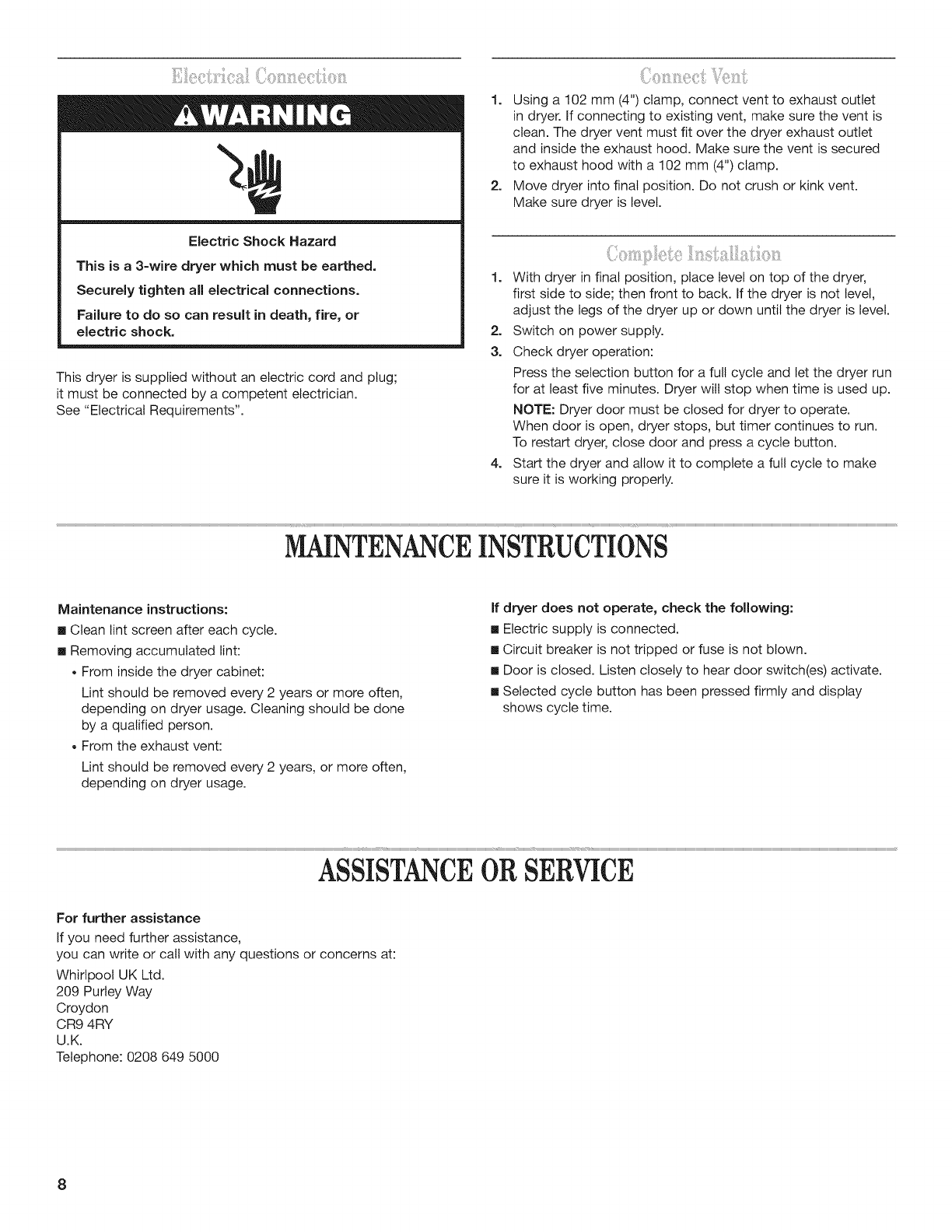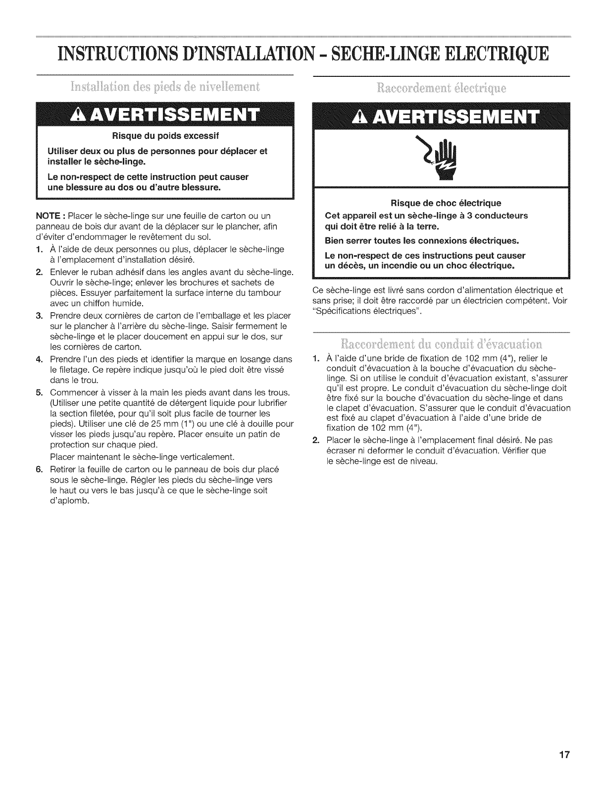 INSTALLATION INSTRUCTIONS - ELECTRIC DRYER .......... 7