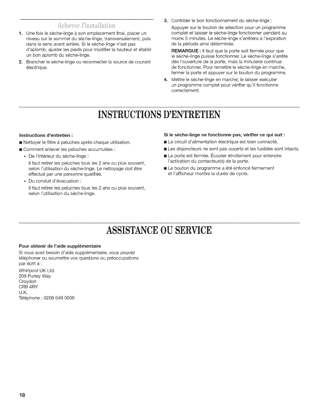 INSTRUCTIONS D'ENTRETIEN ............................................... 18