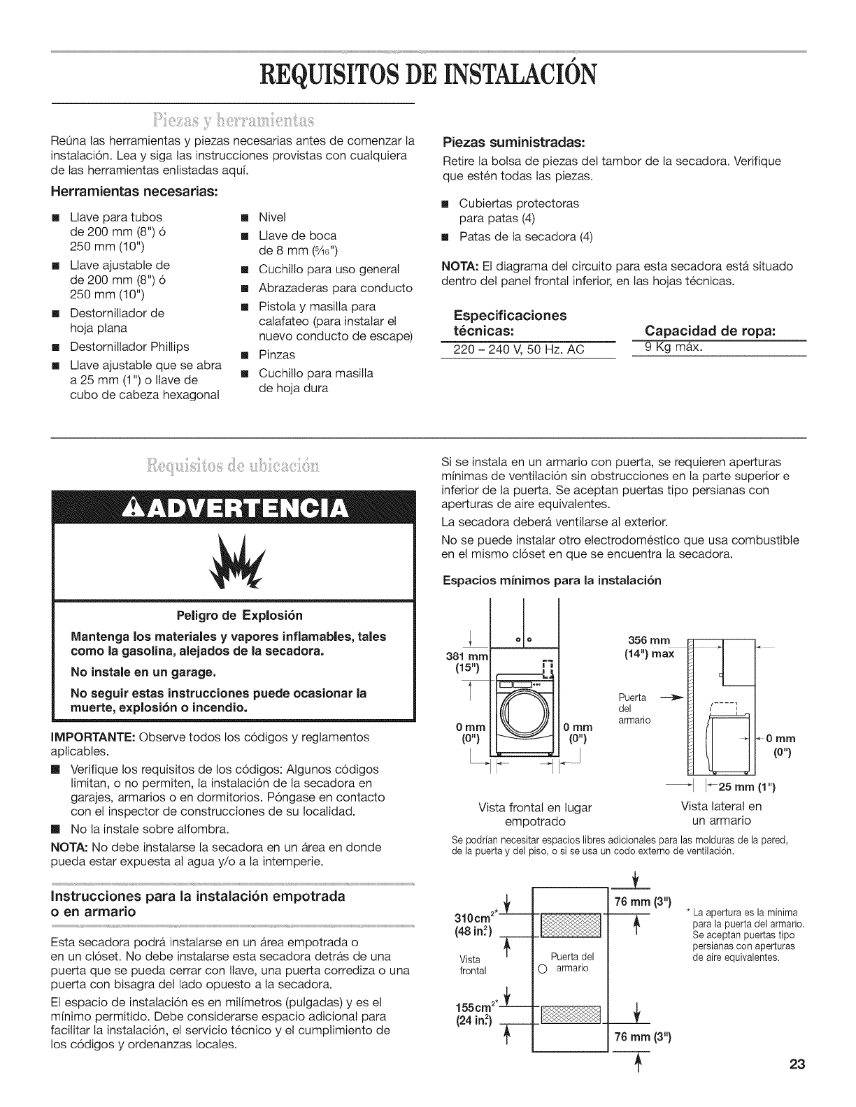Requisitos de ubicaci6n ........................................................ 23