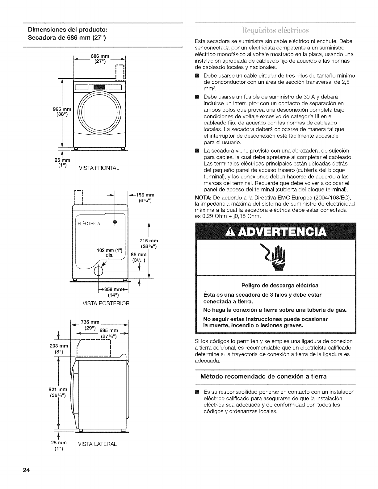 Requisitos electricos ............................................................ 24
