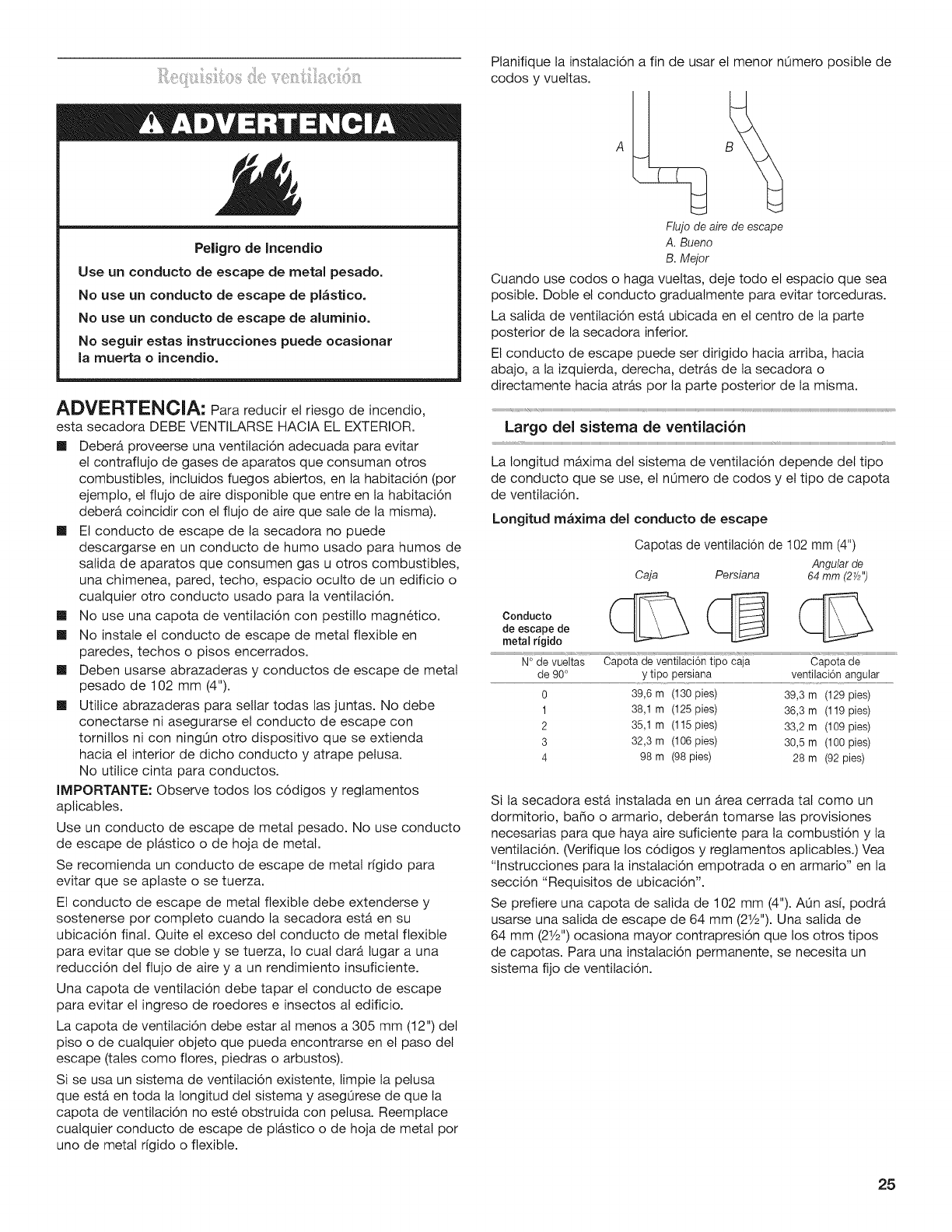 Requisitos de ventilaci6n .................................................... 25