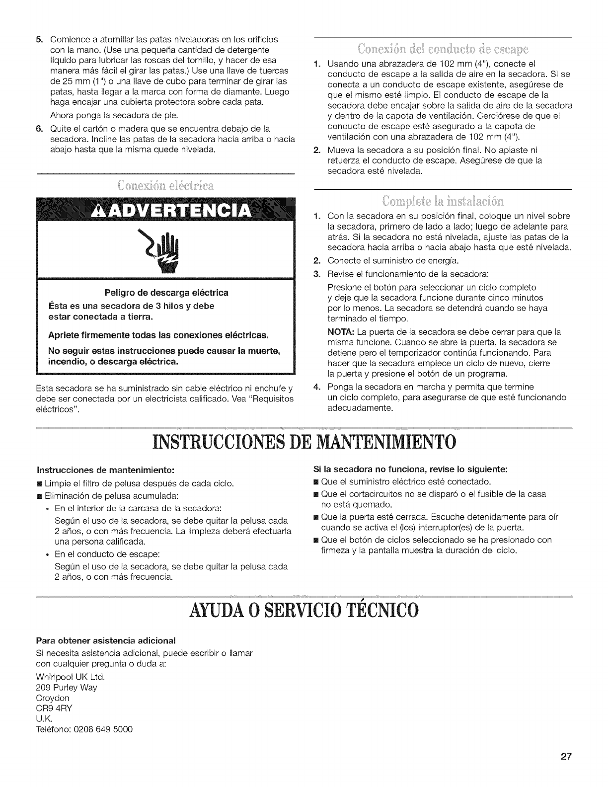 AYUDA O SERVIClO TECNICO ............................................... 27