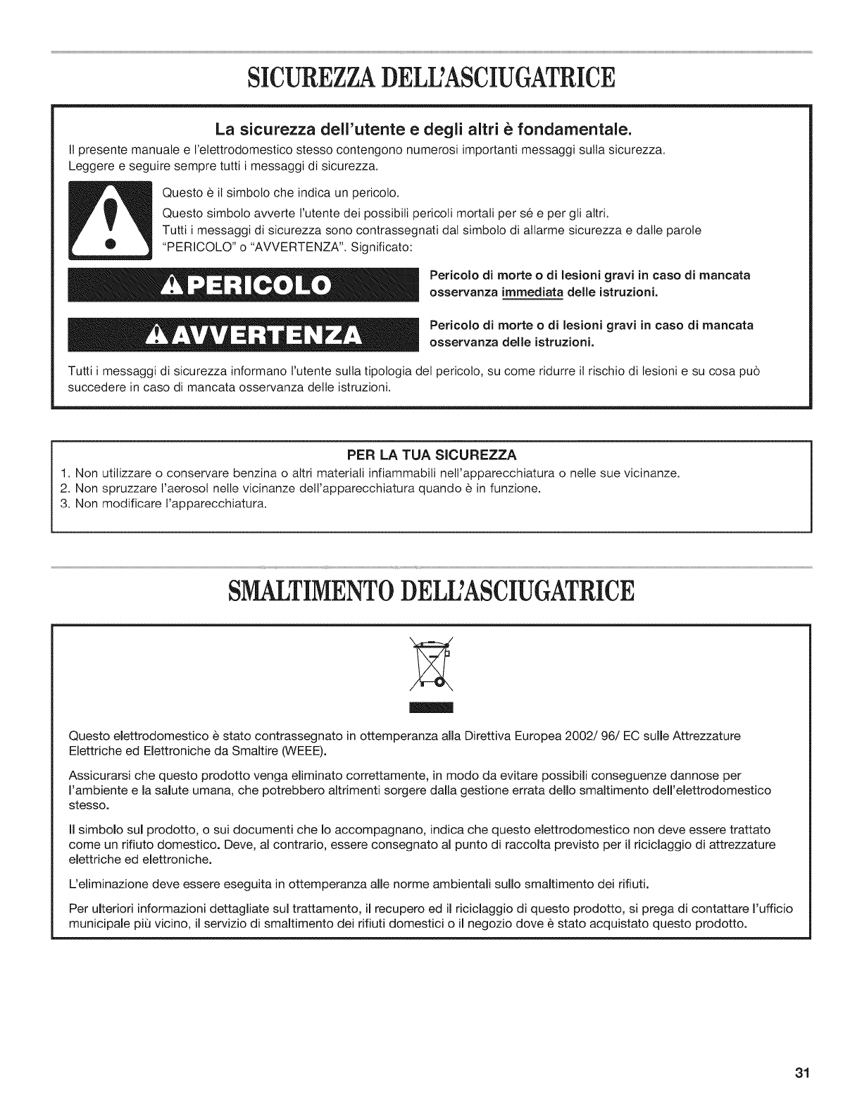 SICUREZZA DELL'ASCIUGATRICE ........................................ 31