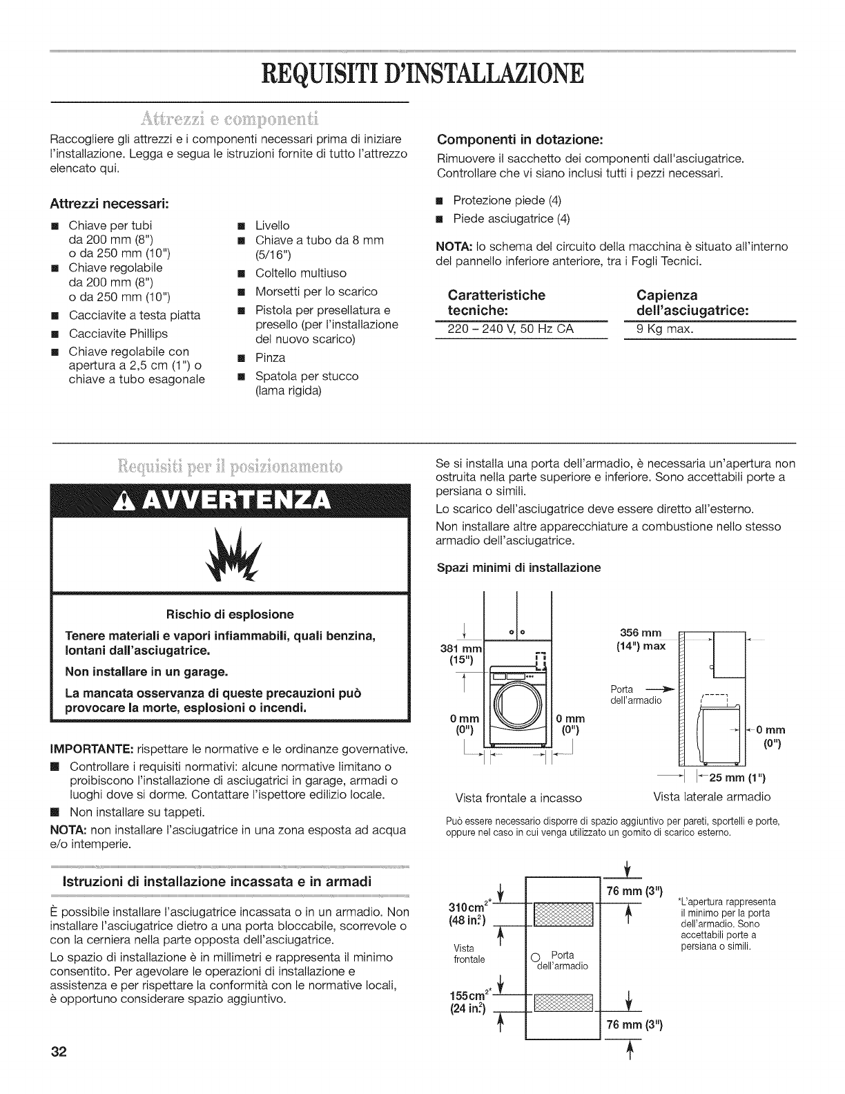 REQUISITI D'INSTALLAZIONE ................................................ 32