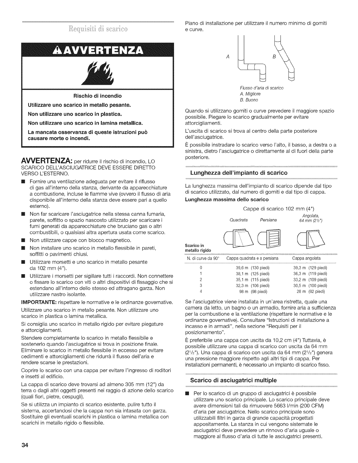 Requisiti di scarico .................................................................. 34