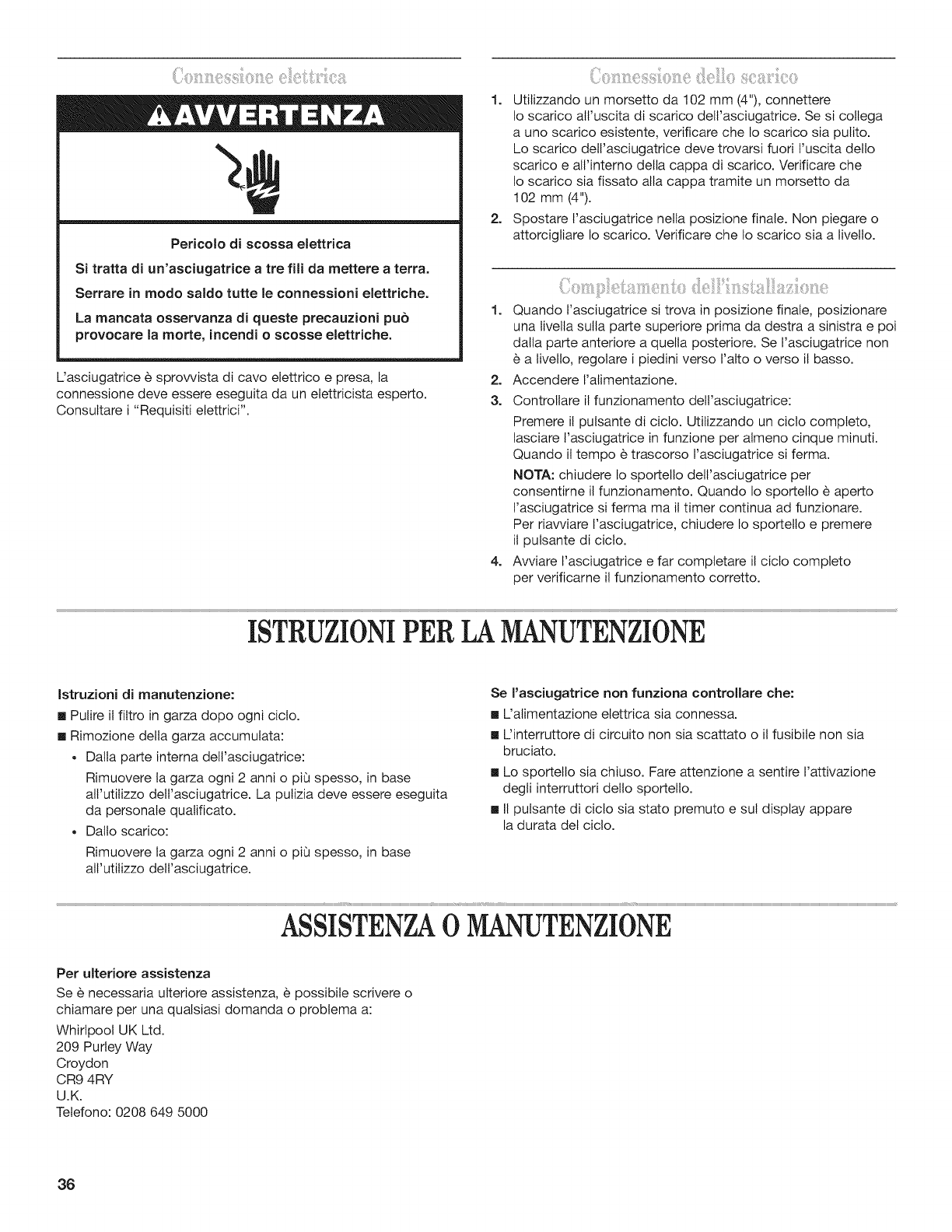 ASSISTENZA OMANUTENZIONE ......................................... 36
